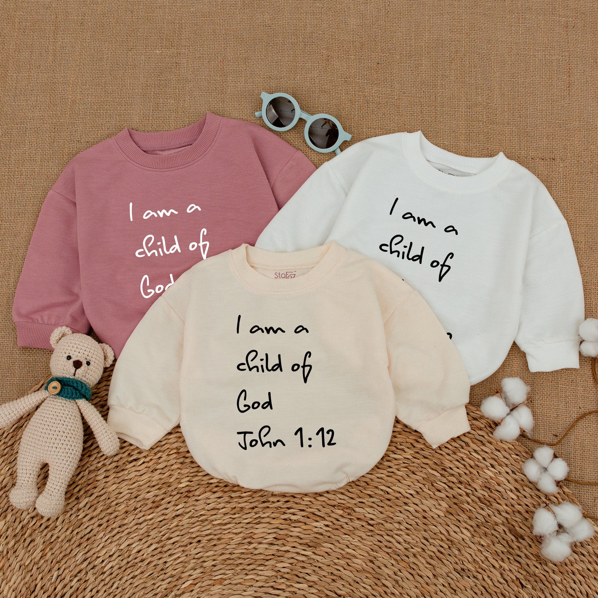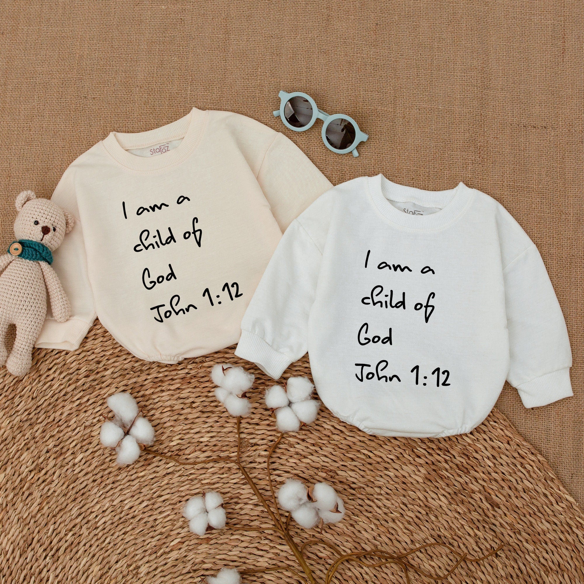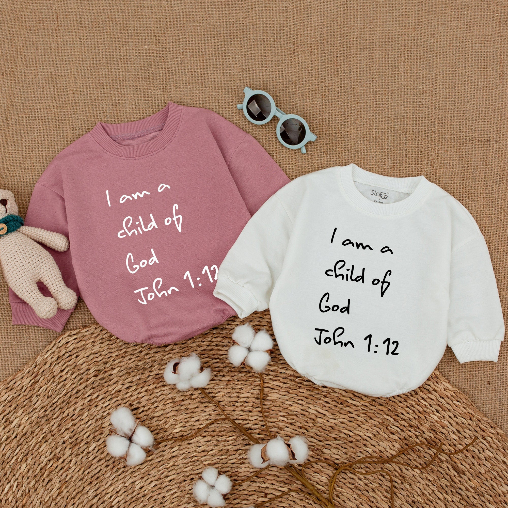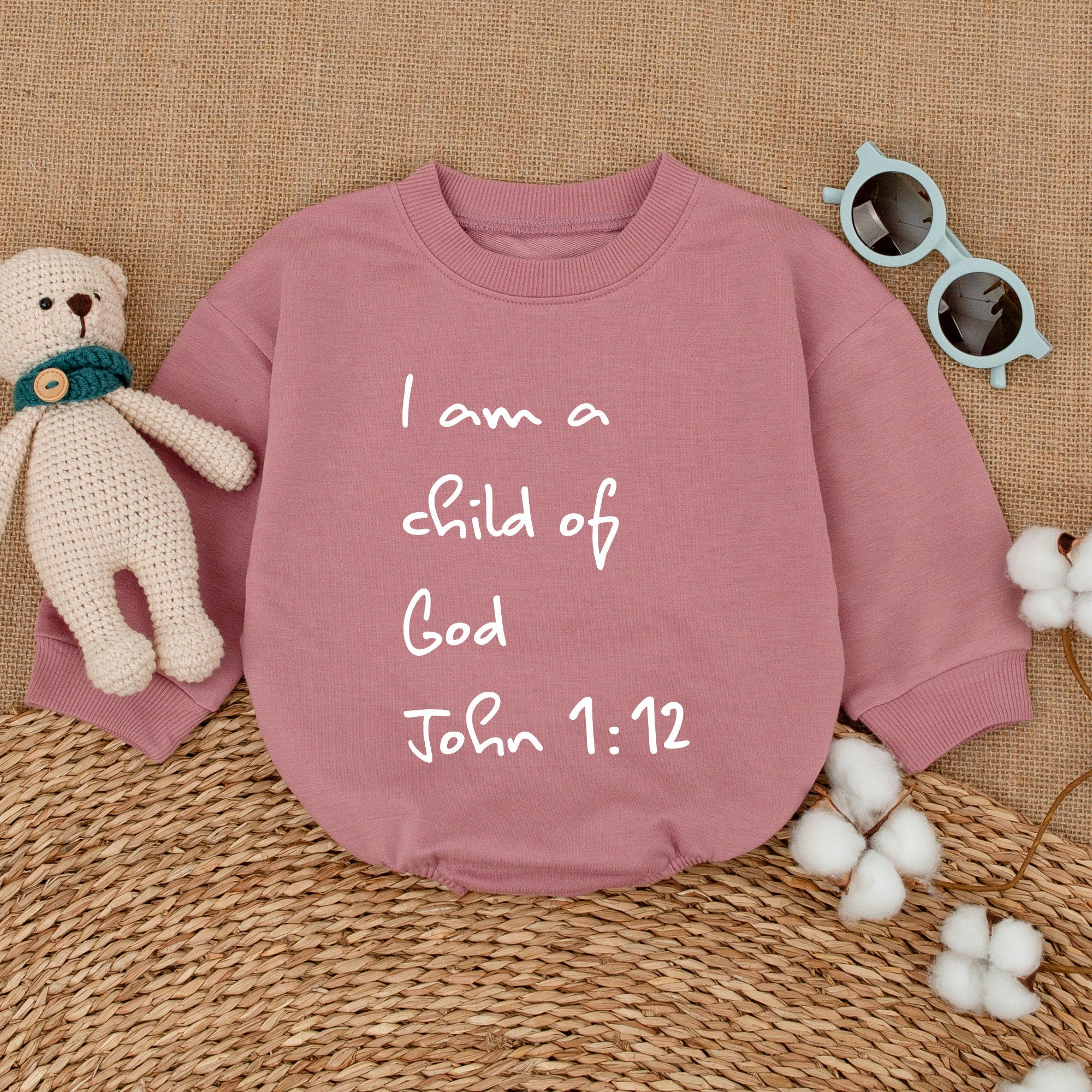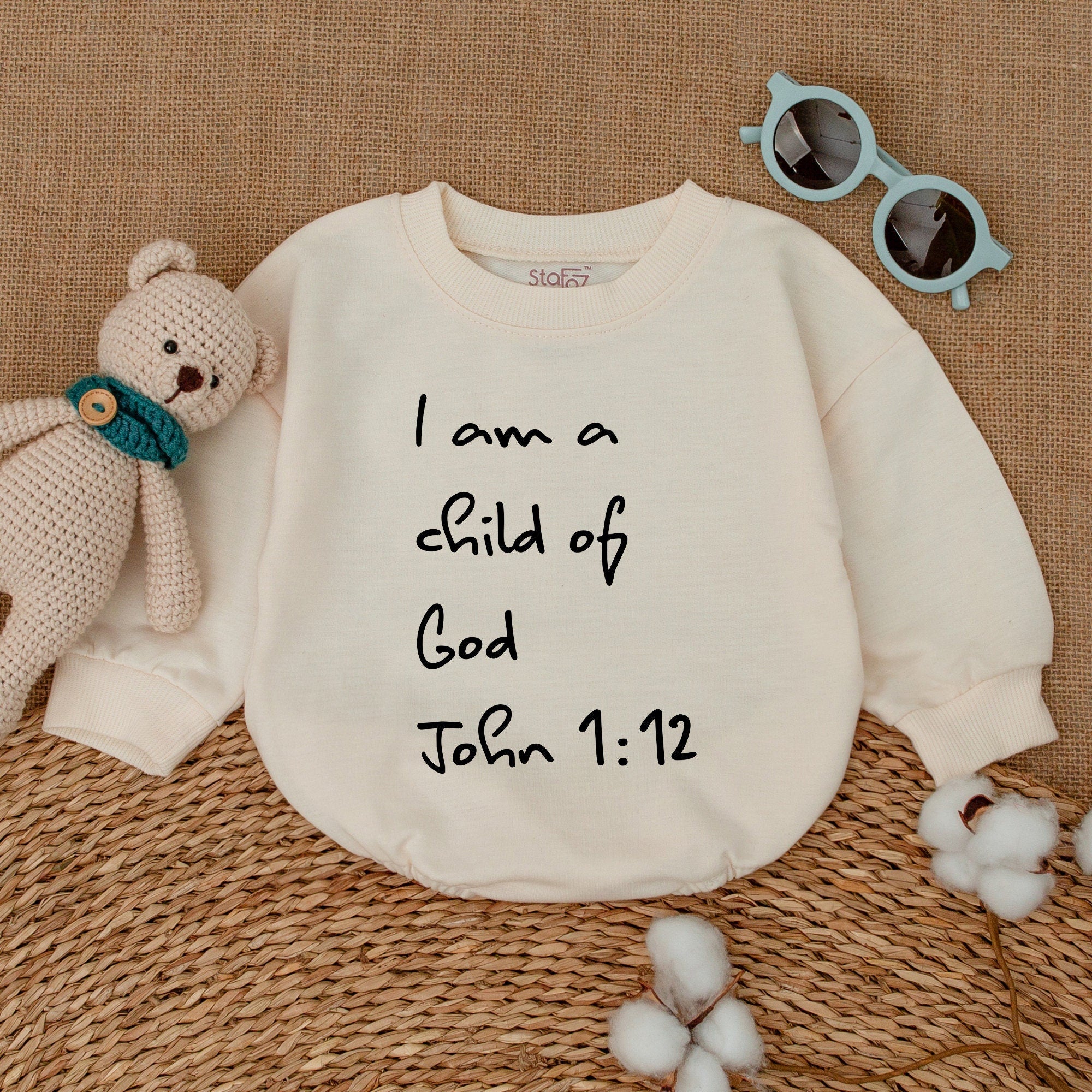 I Am a Child of God Baby Romper with Bible Verse John 1:12 Handwritten Style Religious Keepsake Outfit Christian Newborn Gift