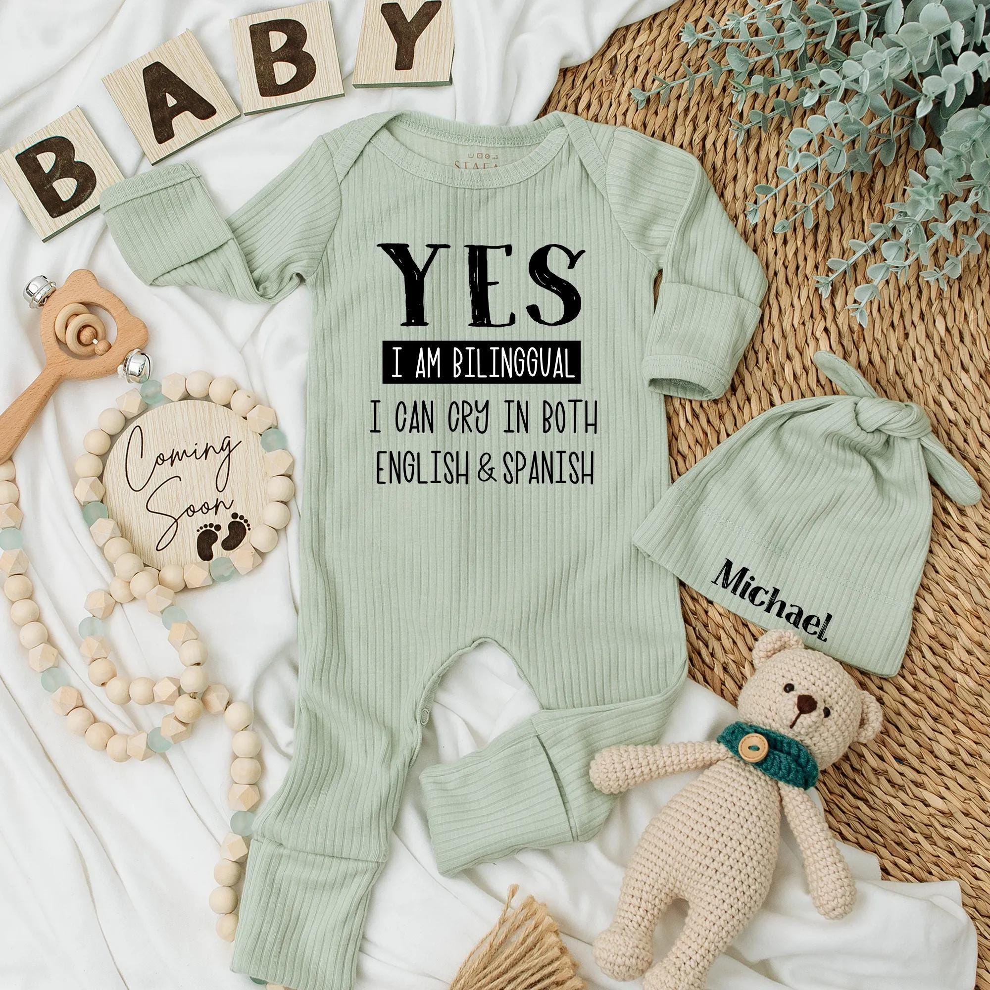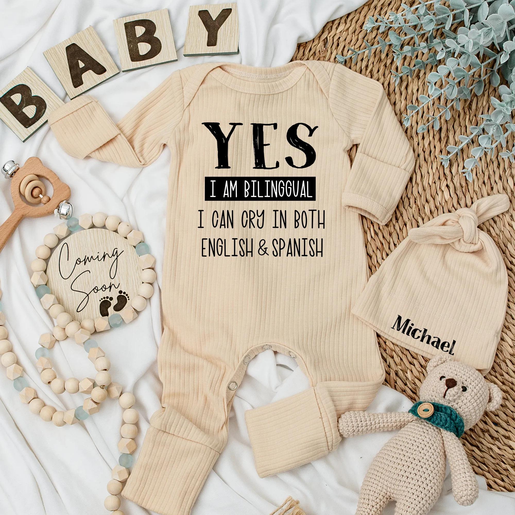 Bilingual Baby Bodysuit English Spanish Humor Newborn Gift Cotton Soft Infant Outfit Latino Baby Shower Clothes Personalized Name
