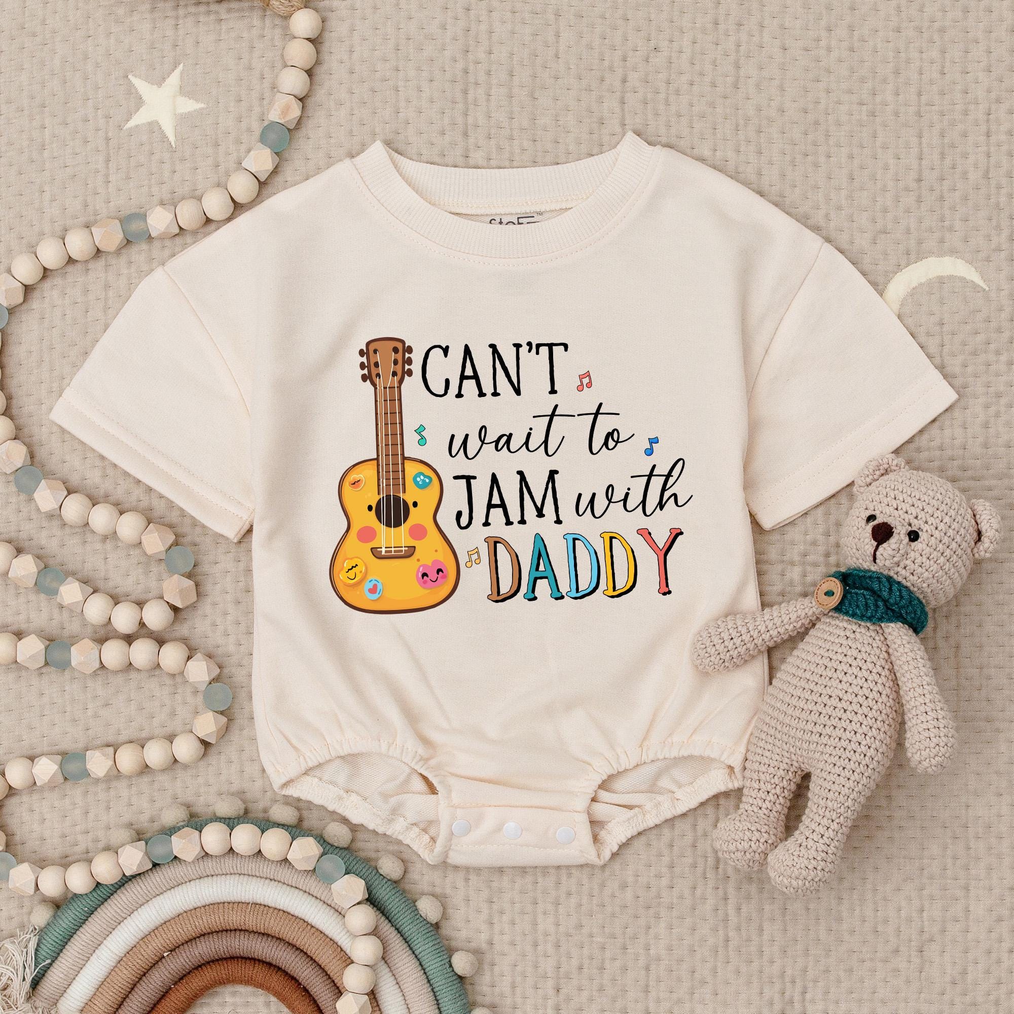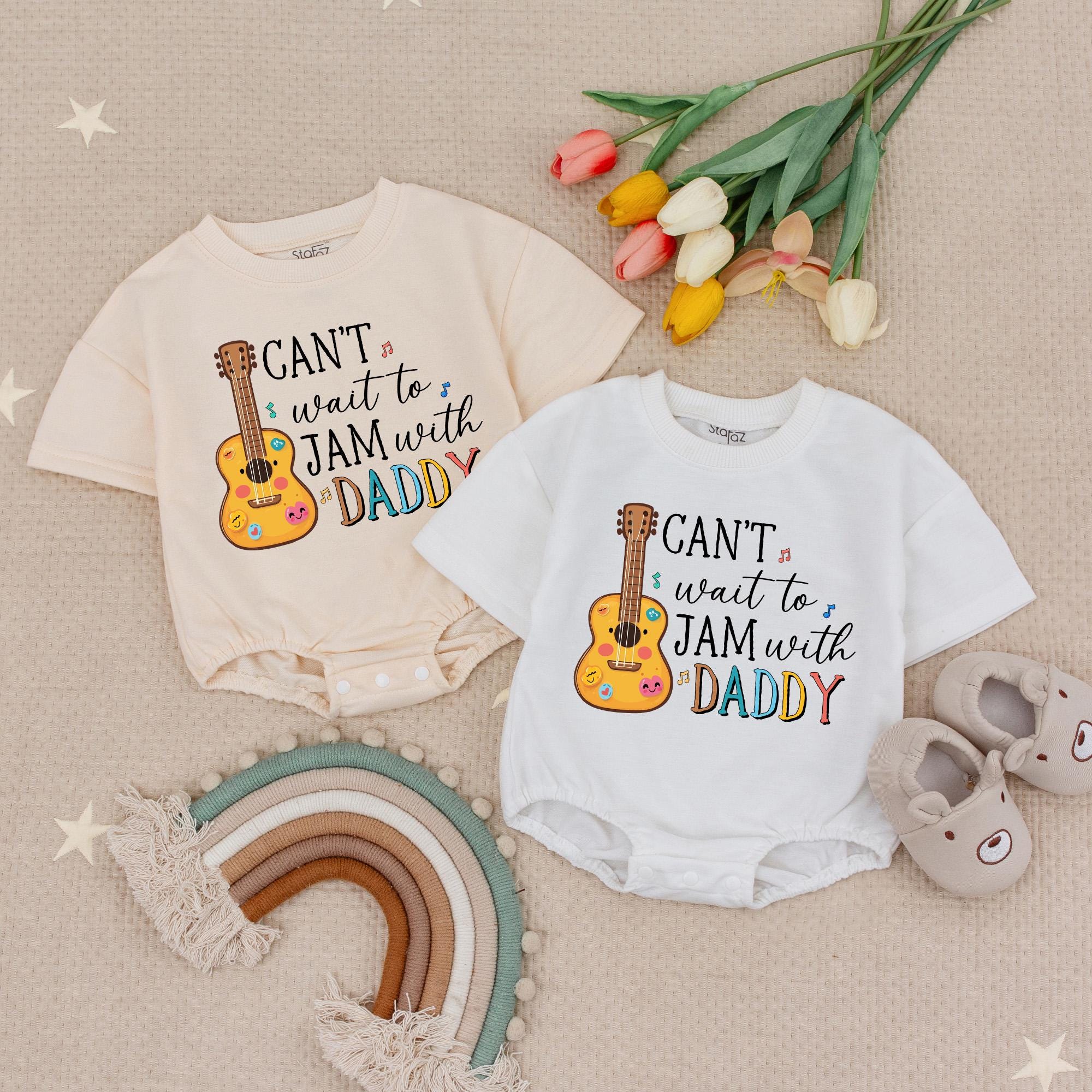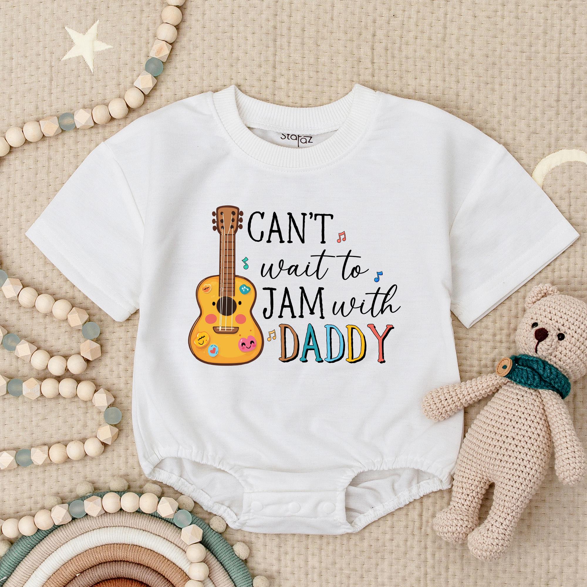 Can't Wait to Jam with Daddy Baby Romper Colorful Guitar Music Notes Infant Bodysuit Soft Cotton Baby Future Musician Outfit Gift