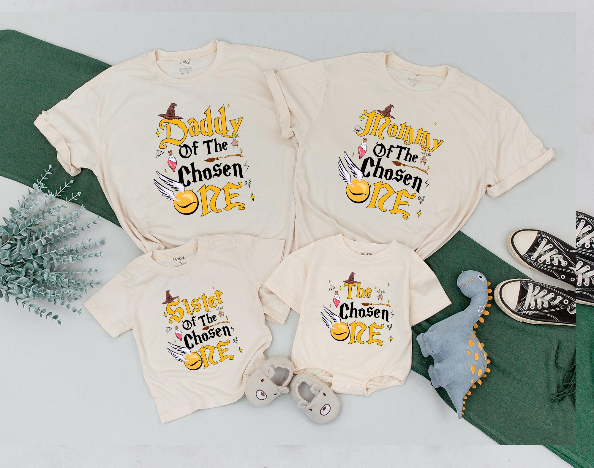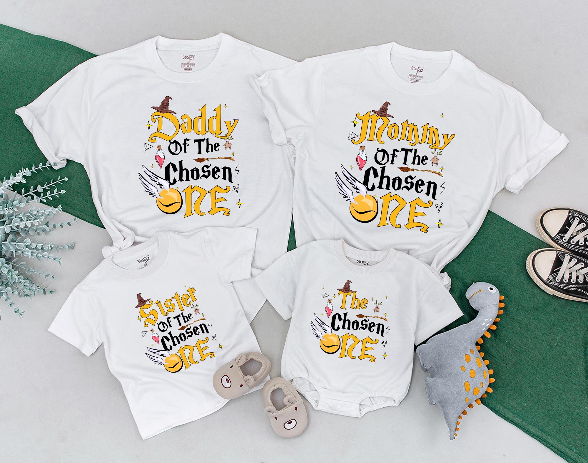 The Chosen One Family T-Shirts Magical Birthday Cotton Outfits Personalized Wizard Theme for Baby Mommy Daddy Sister Brother Fun Gift