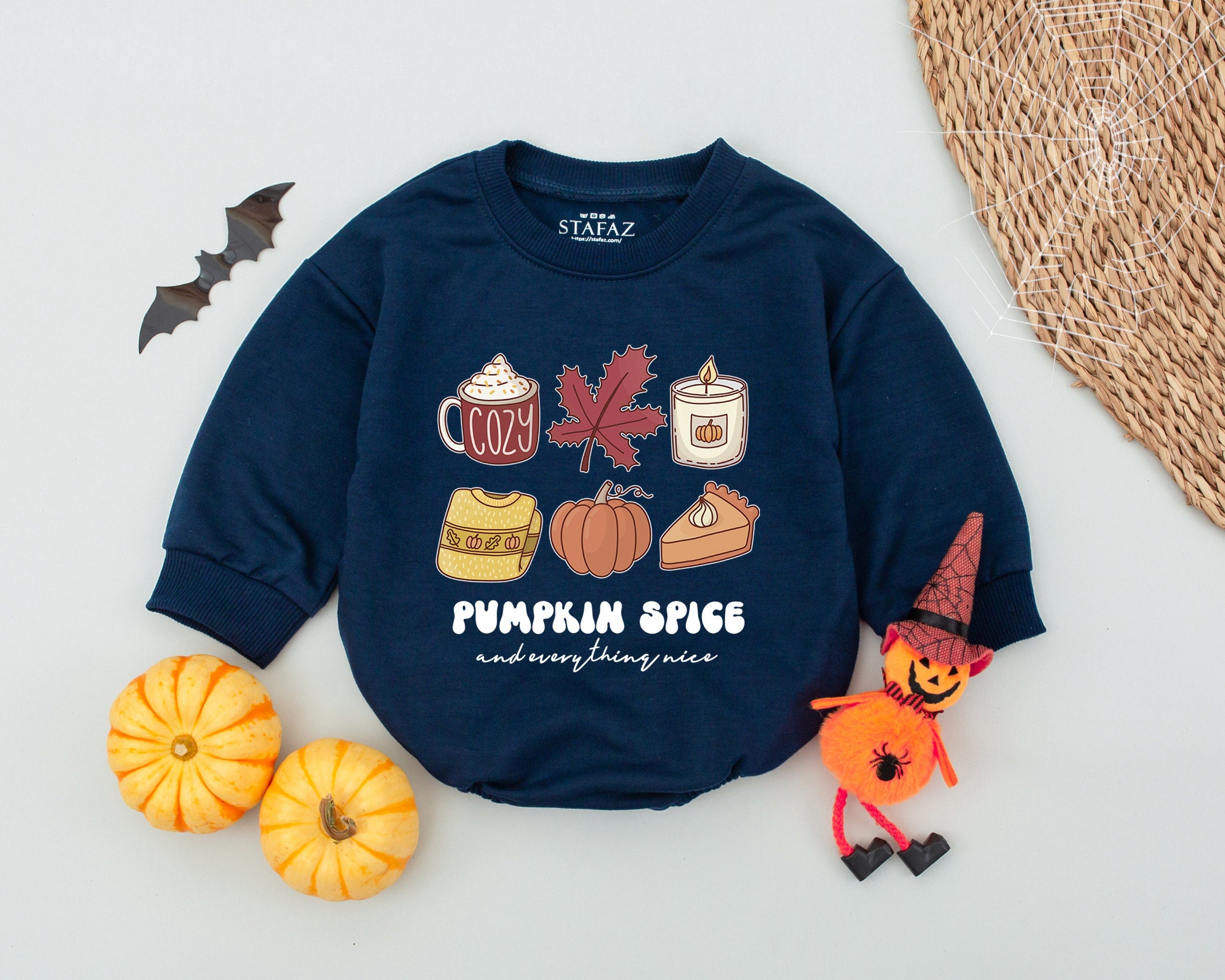 Cozy Pumpkin Spice Baby Romper with Whimsical Autumn Design Perfect for Thanksgiving Holiday Infant Outfit