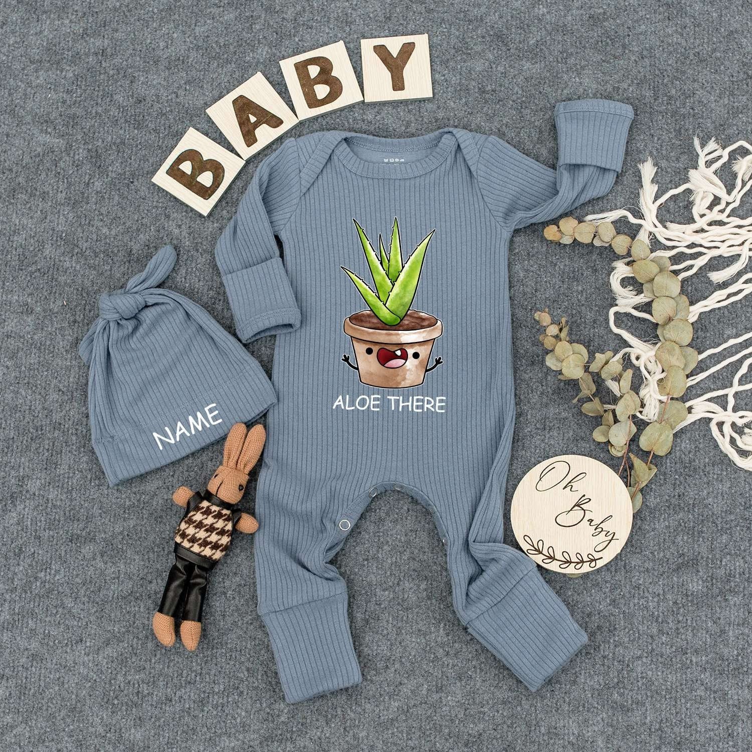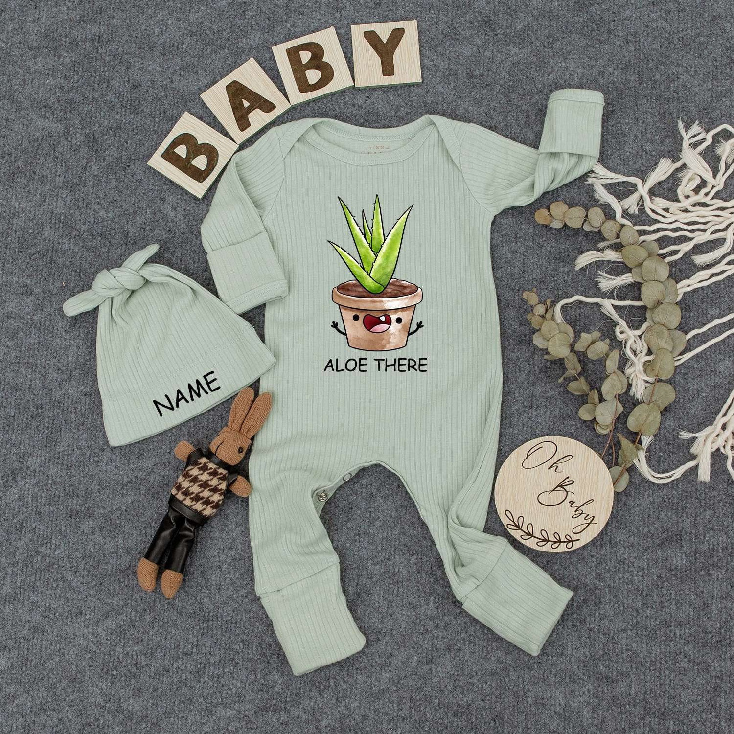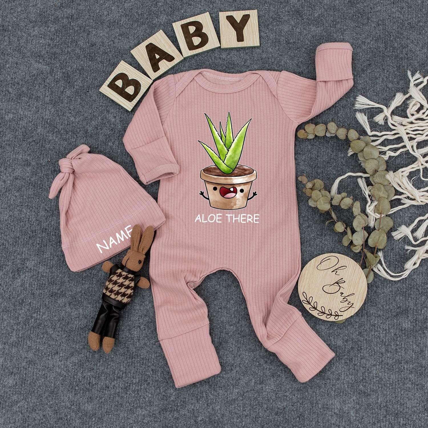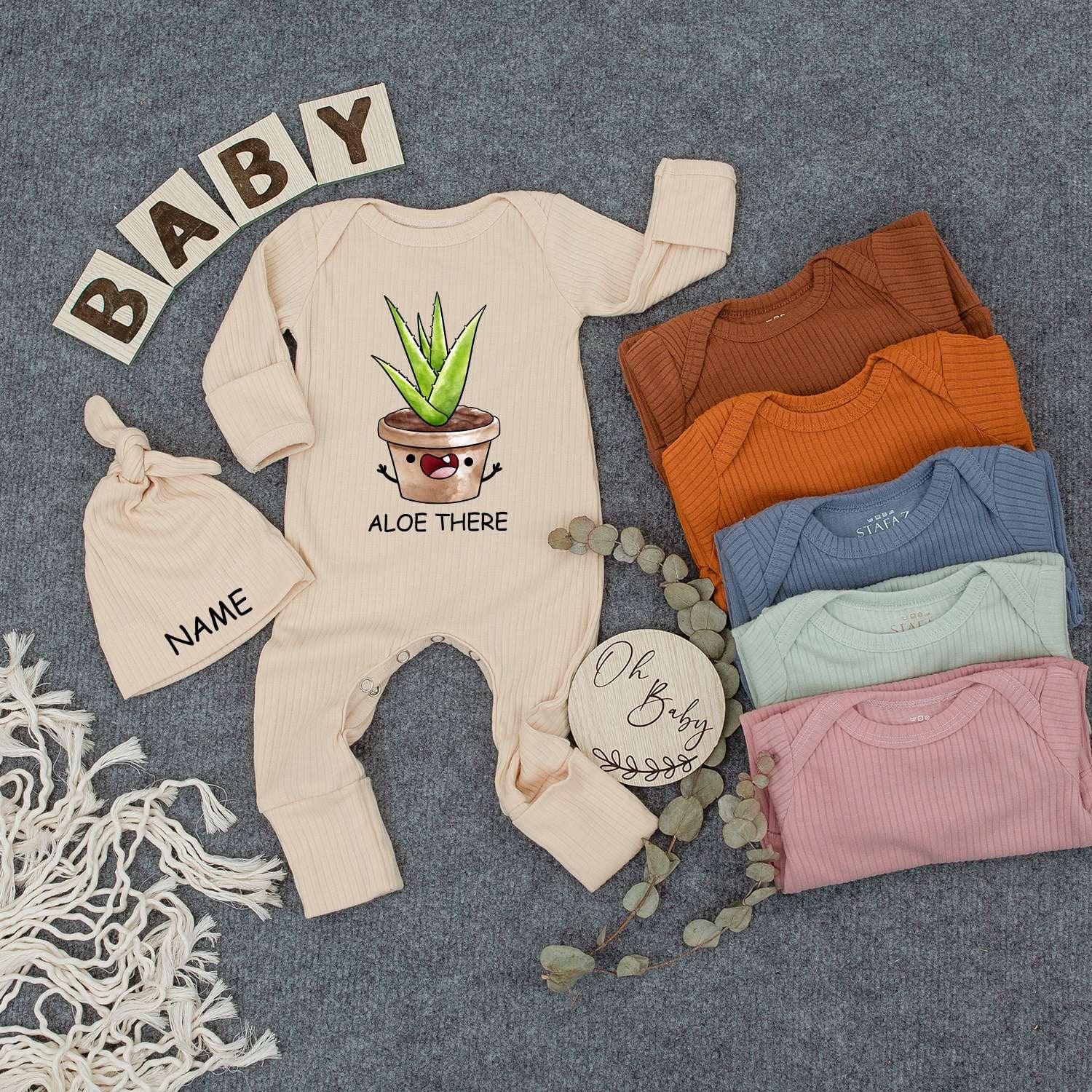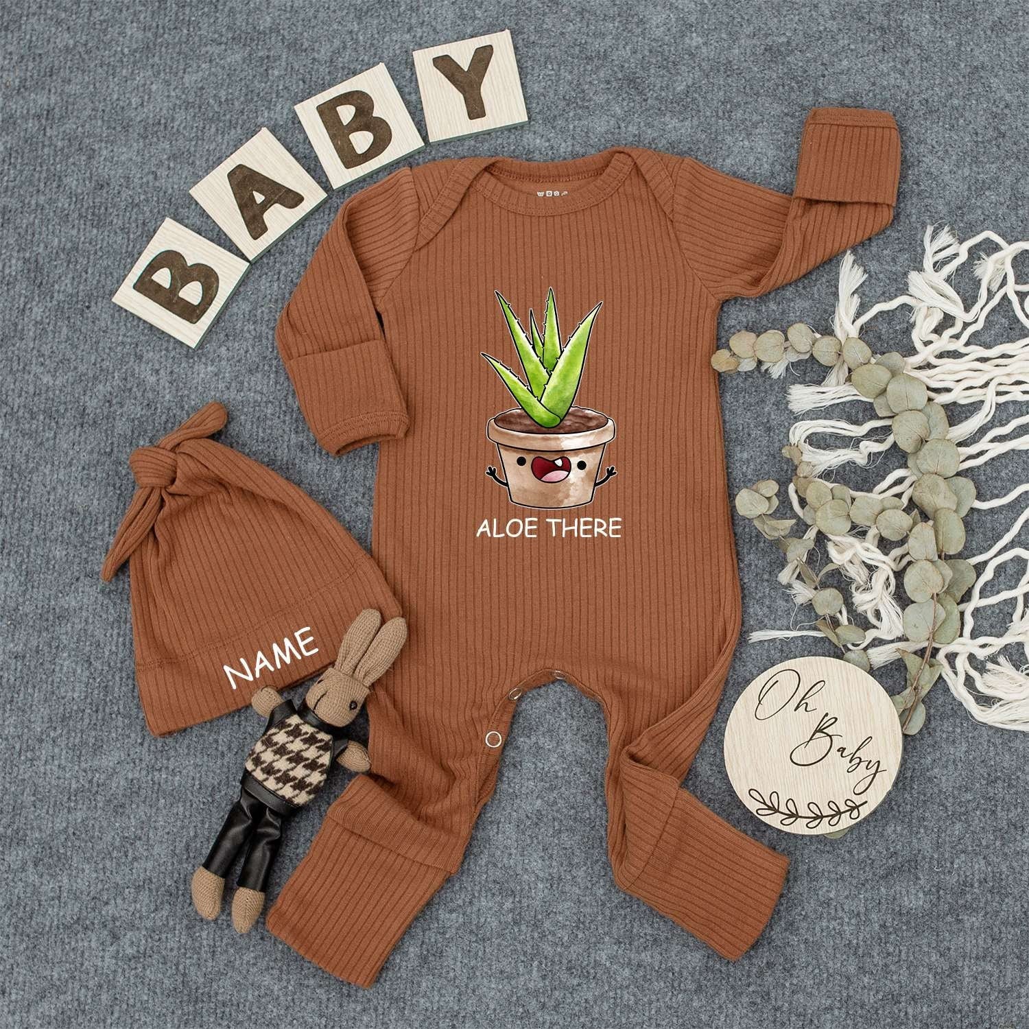 Custom Aloe There Baby Outfit Personalized Bodysuit and Hat for Newborns Cute Gift Soft Cotton New Mom Present Adorable Design