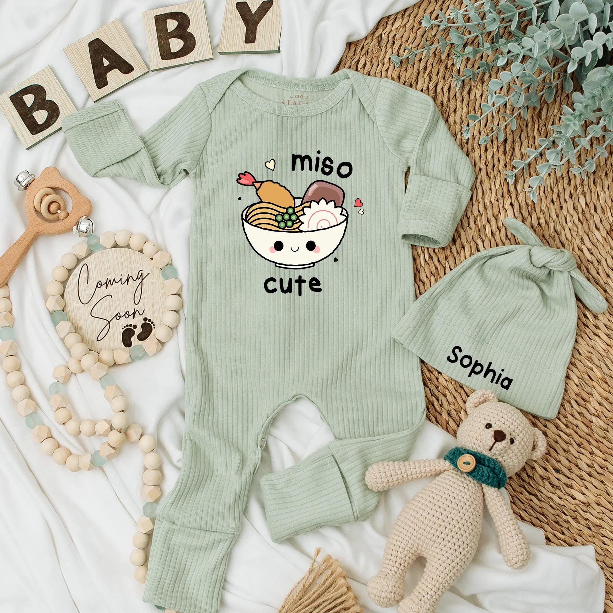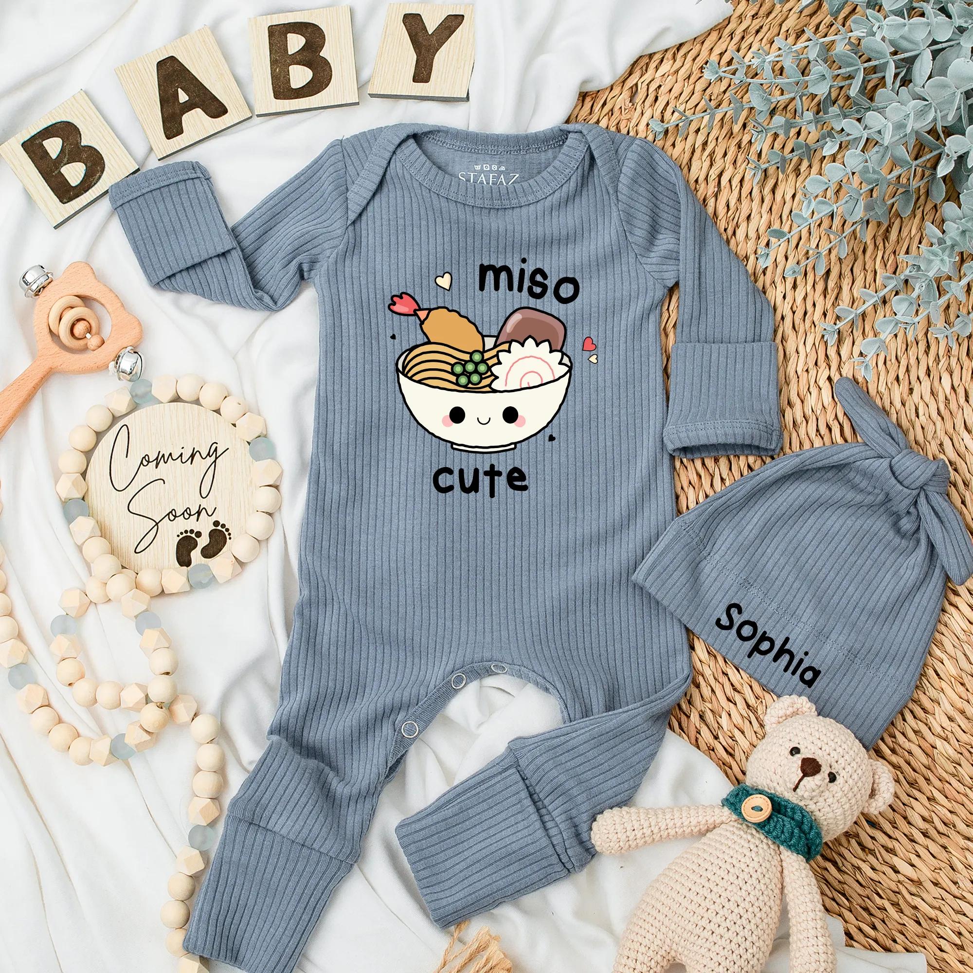 Custom Miso Cute Baby Bodysuit Adorable Noodles Outfit Soft Cotton Newborn Gift Personalized Infant Clothes Foodie Parents Shower Present