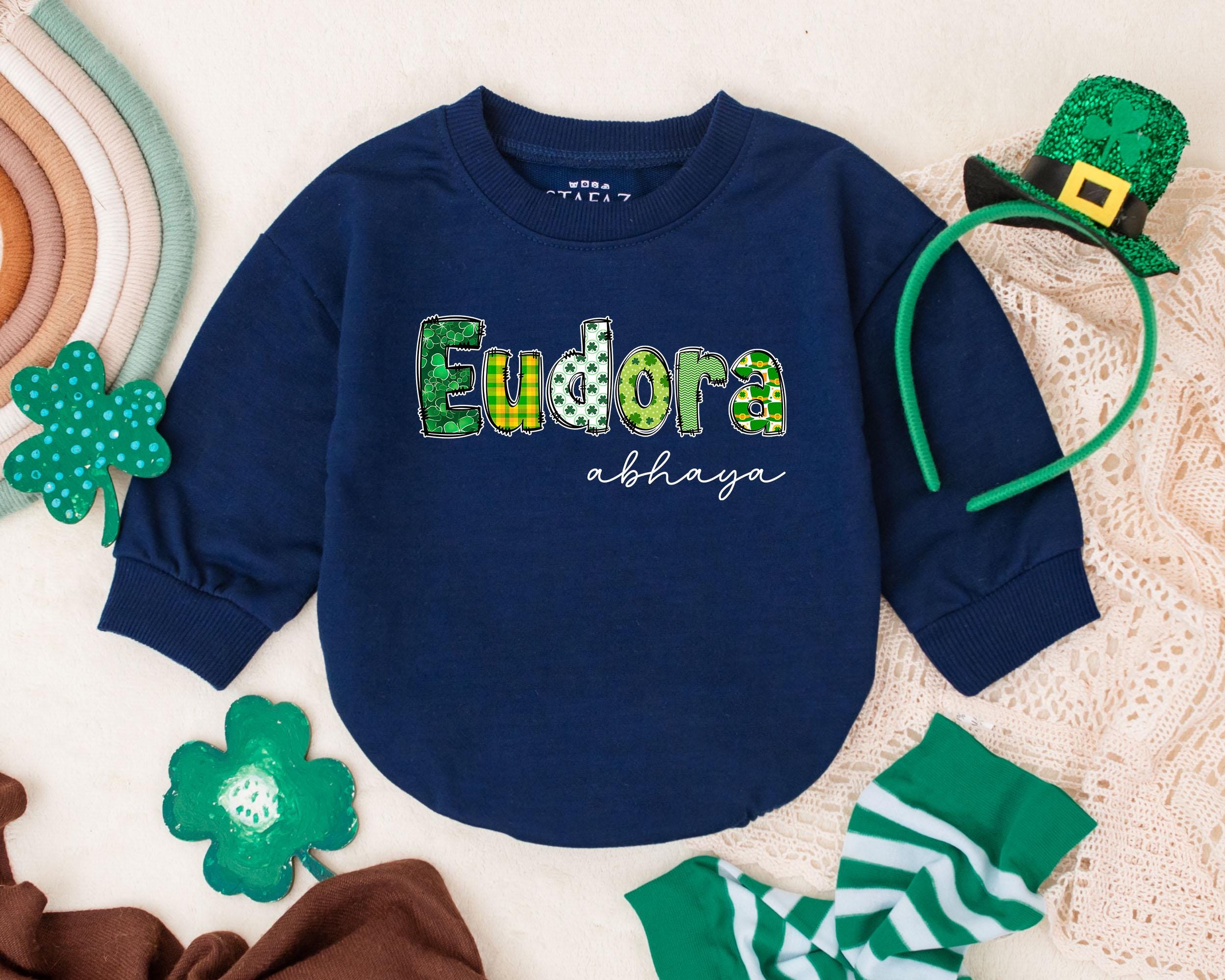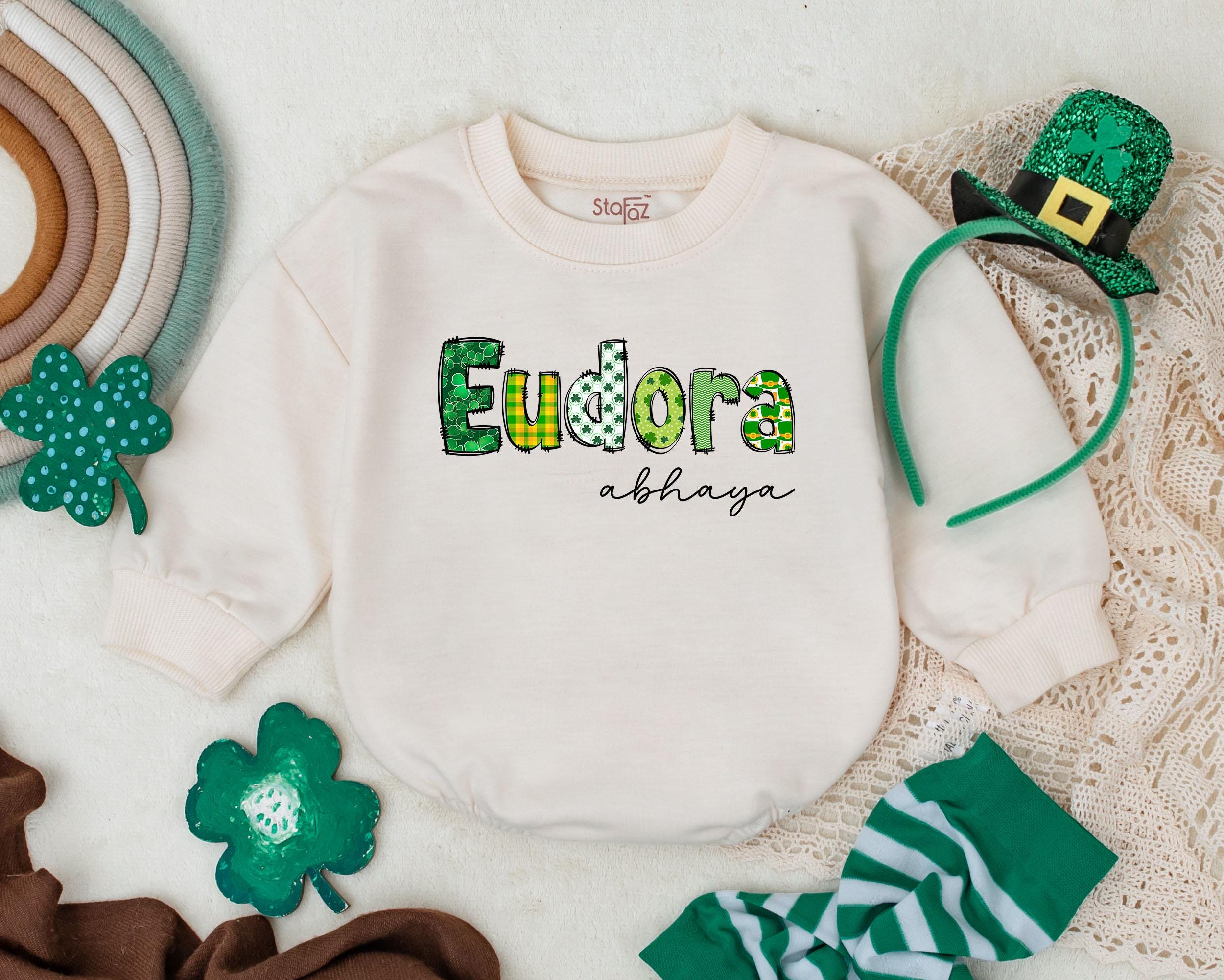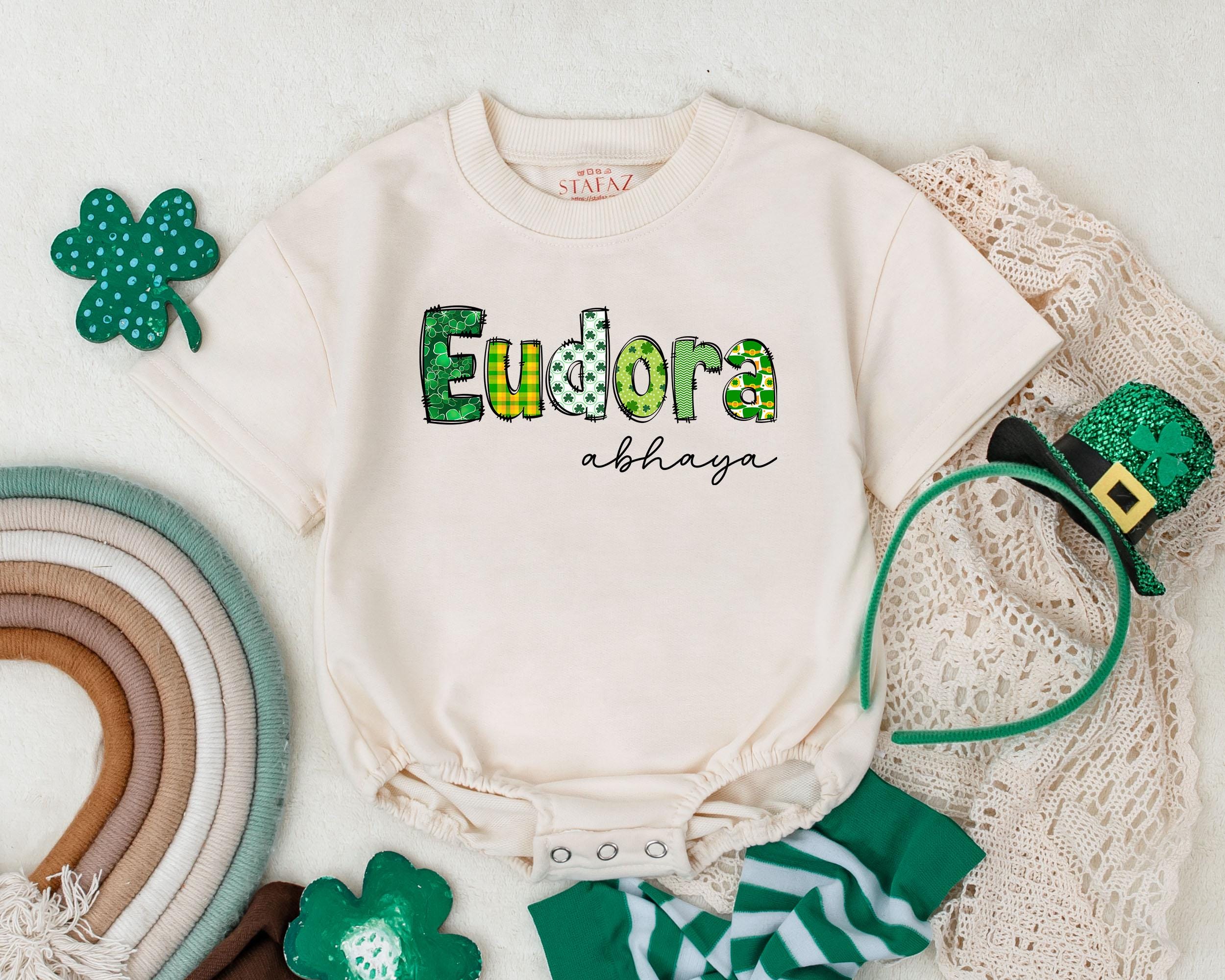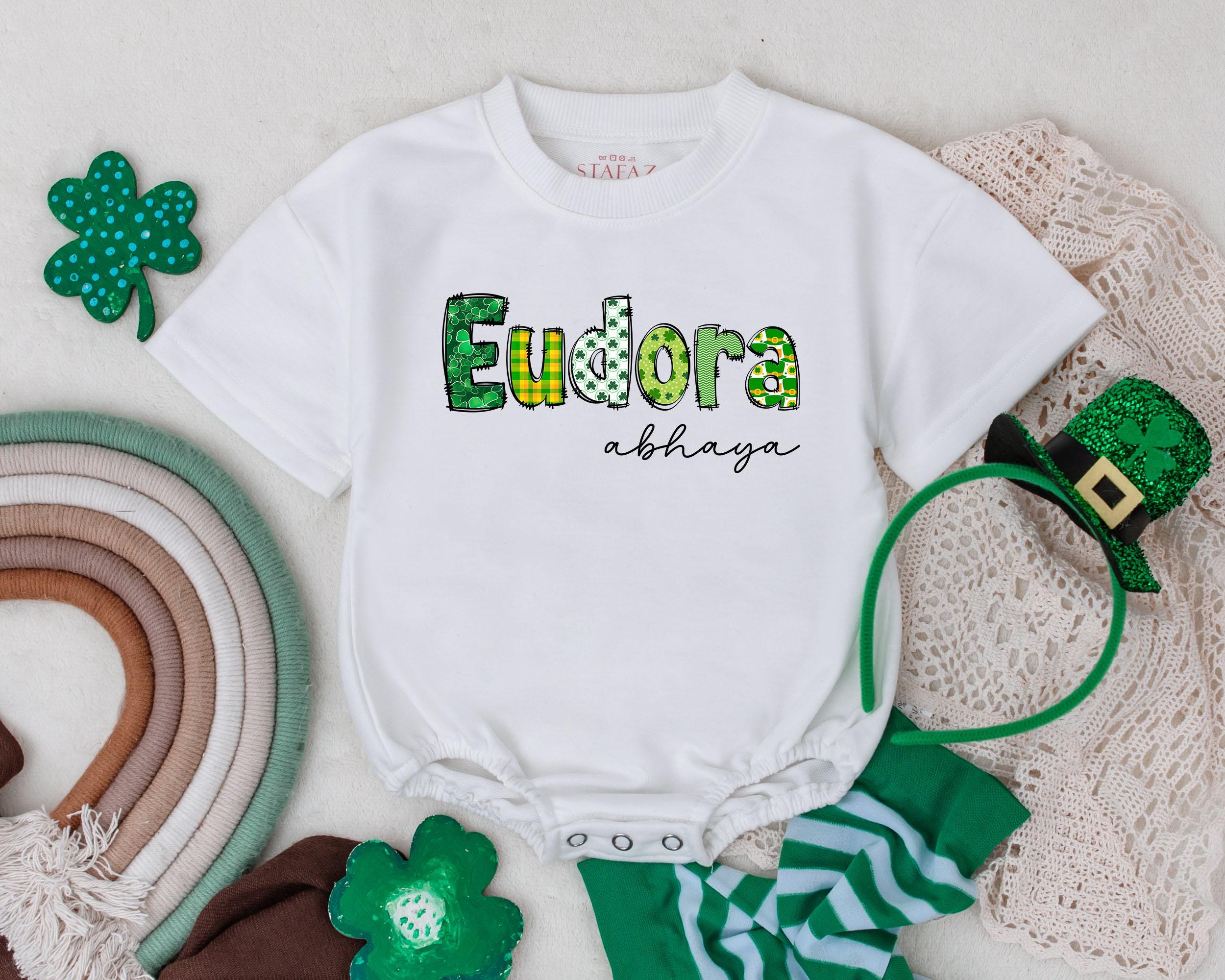Custom St Patrick's Day Baby Romper Eudora Shamrock Design Infant Bodysuit Newborn Gift Boys Girls First Holiday Outfit Lucky Charm