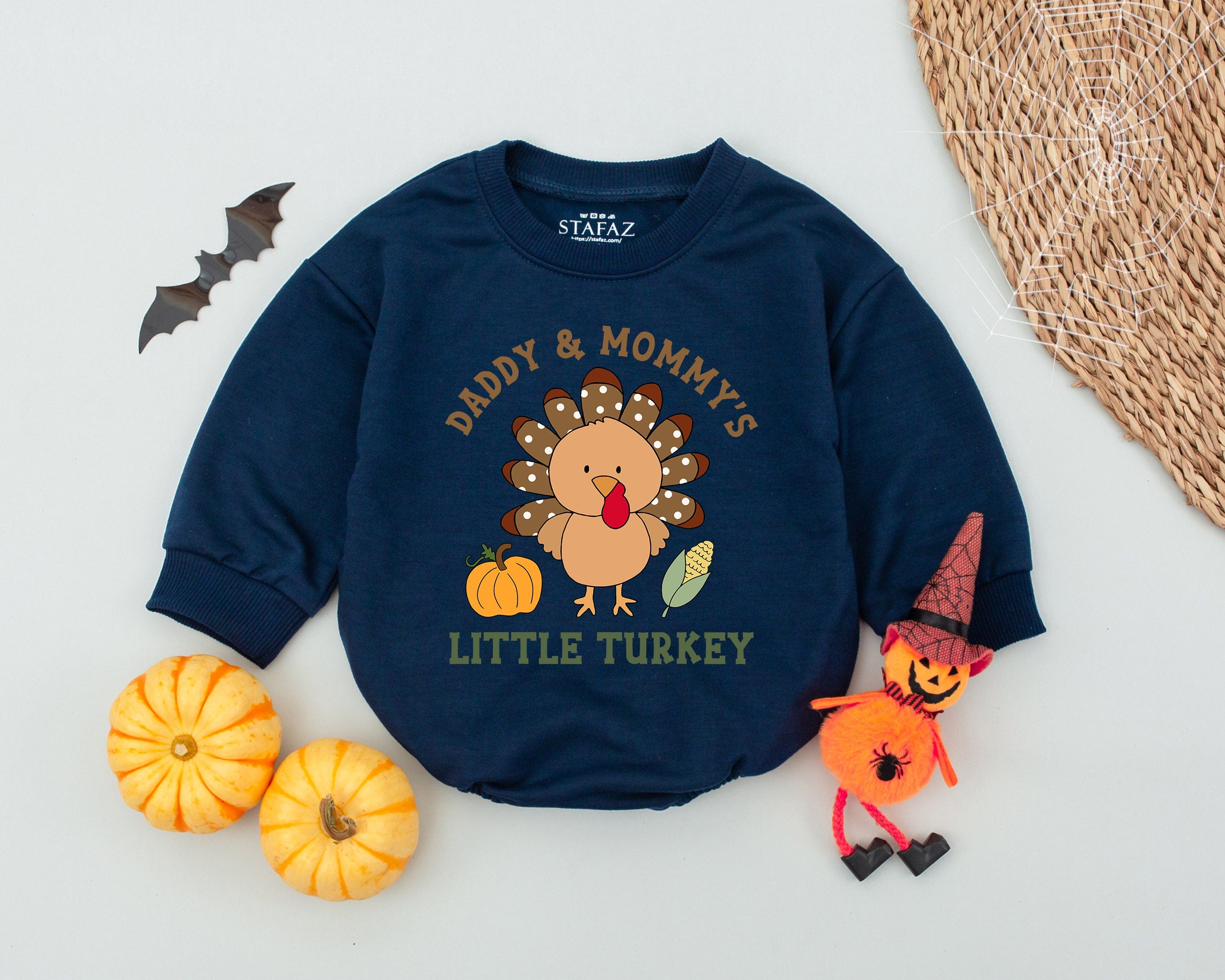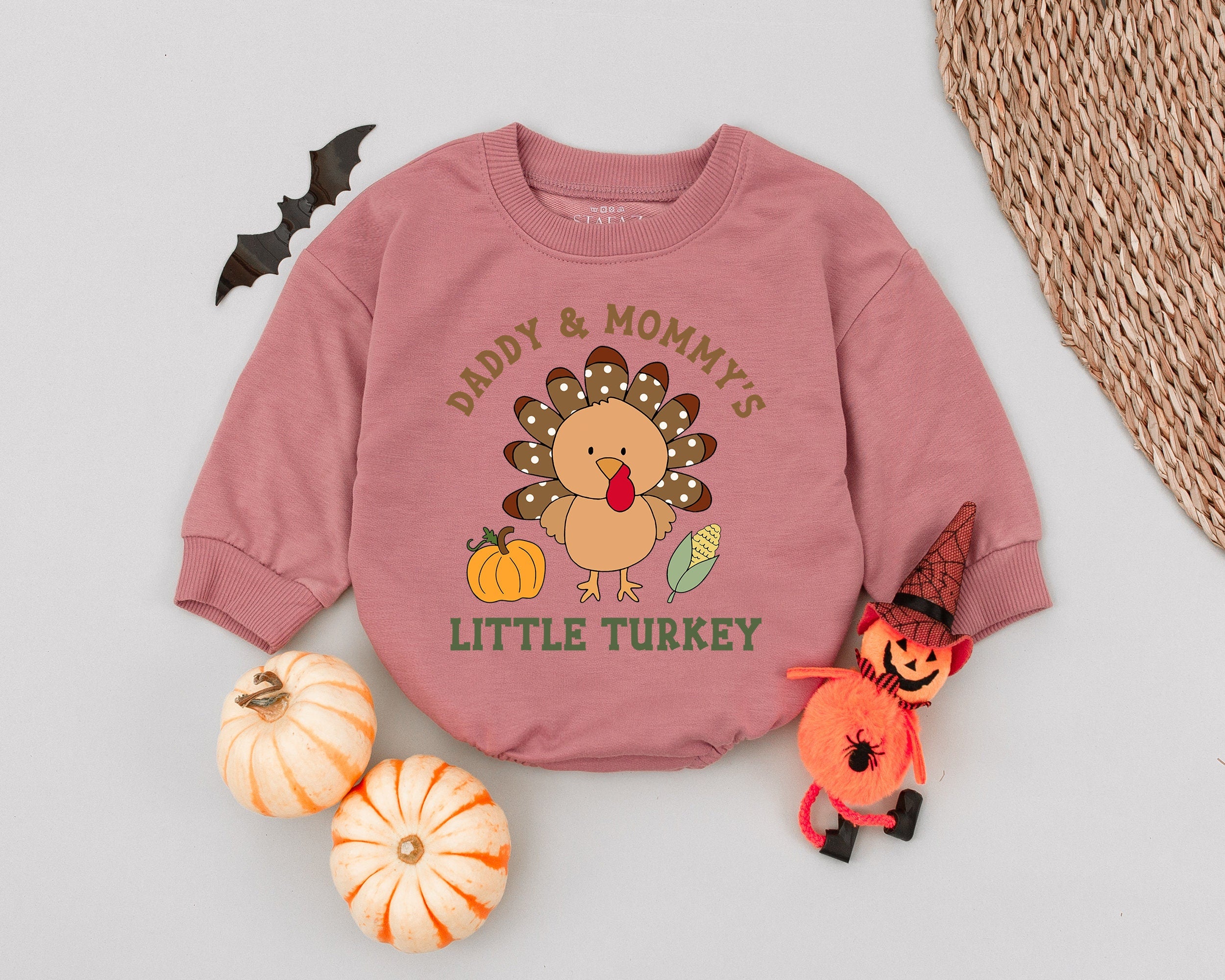 Daddy and Mommy's Little Turkey Baby Romper Cute Thanksgiving Outfit Retro Style Infant Bodysuit Perfect Baby Shower Gift