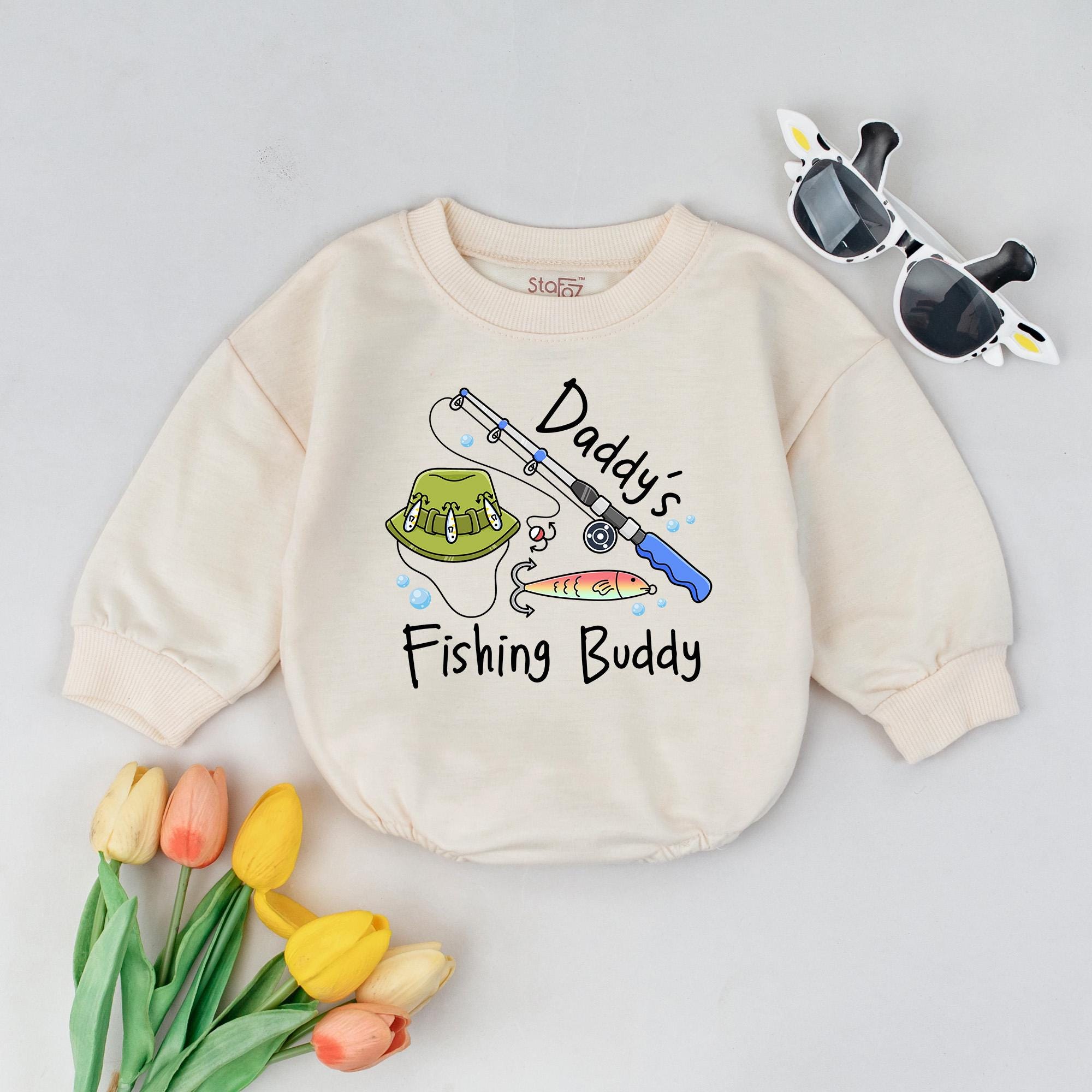 Daddy's Fishing Buddy T-shirt Romper Baby Boy First Father's Day Outfit Cute Fishing Design Comfortable New Dad Gift