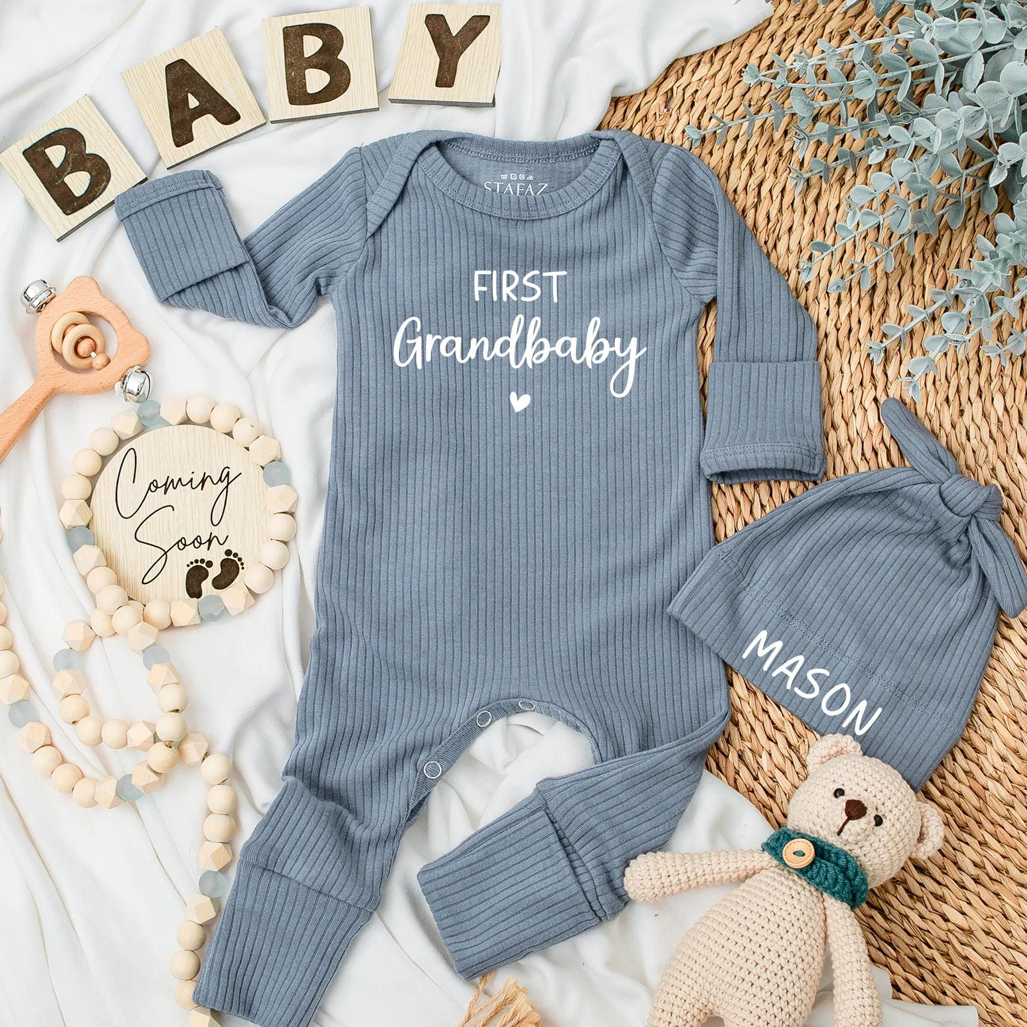First Grandbaby Baby Bodysuit Custom Newborn Outfit Heart Design Gift for New Grandparents Soft Cotton Baby Romper Coming Home Clothes