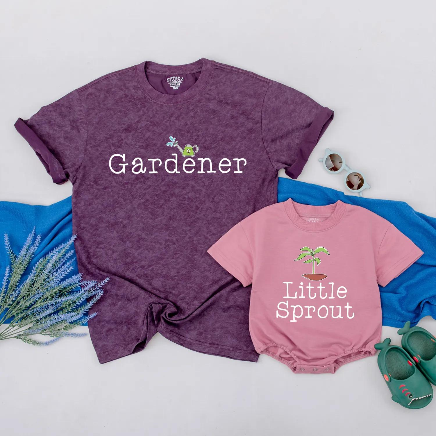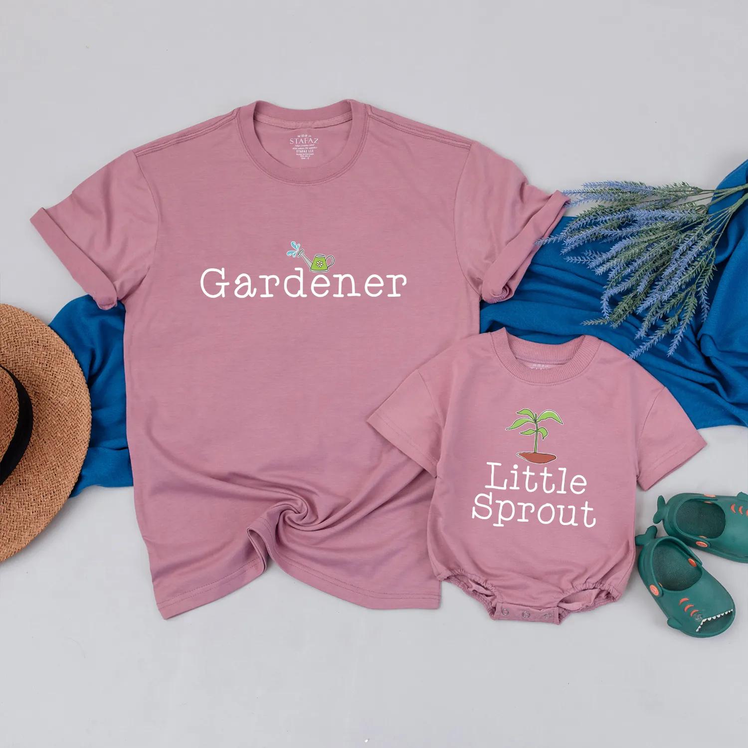 Gardener and Little Sprout Mommy and Me Shirts Cute Family Gardening Outfits Soft Cotton Gift for Baby Shower First Mother's Day