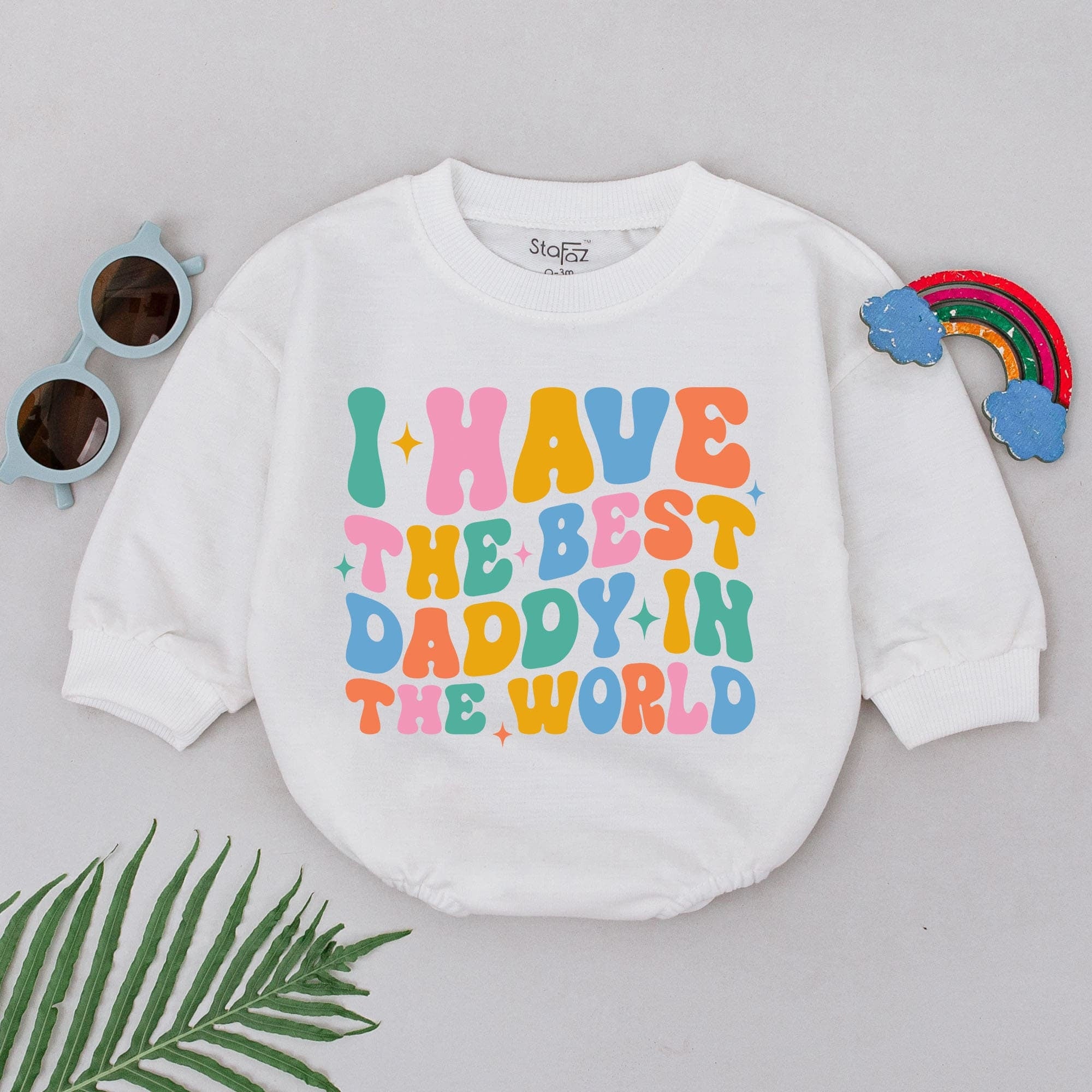 I Have The Best Daddy Baby Romper Colorful Text Newborn Gift Soft Cotton Outfit Father's Day Toddler Girl Playful Star Design