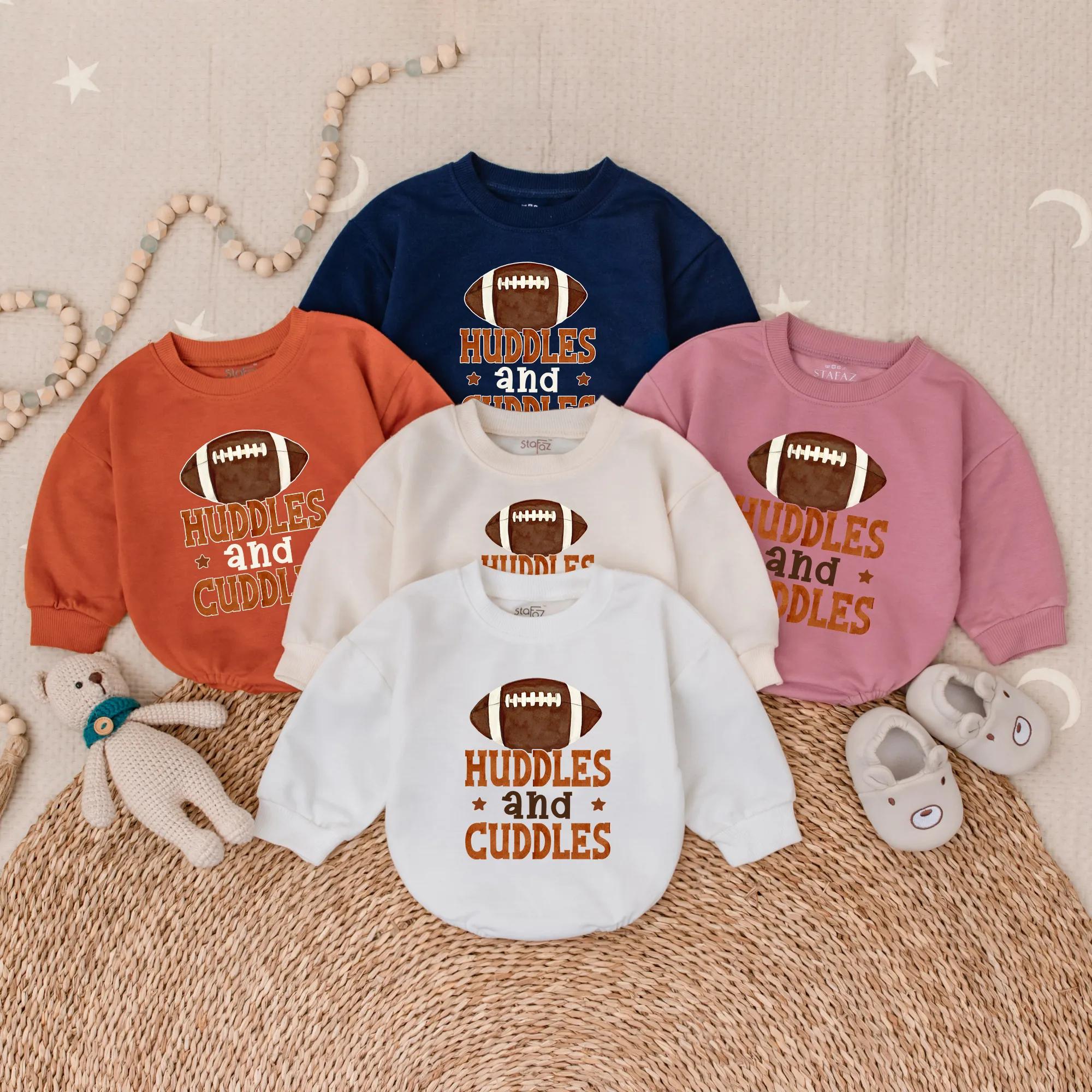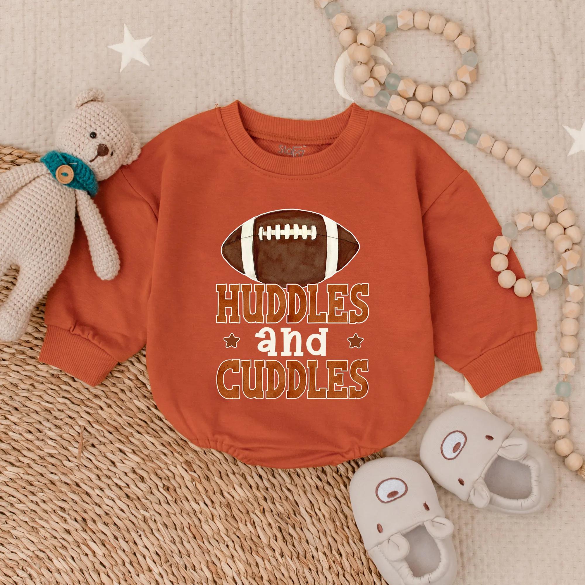 Huddles and Cuddles Football Baby Romper Soft Game Day Outfit Newborn Boy Clothes Sports Theme Cotton Comfortable Baby Shower Gift