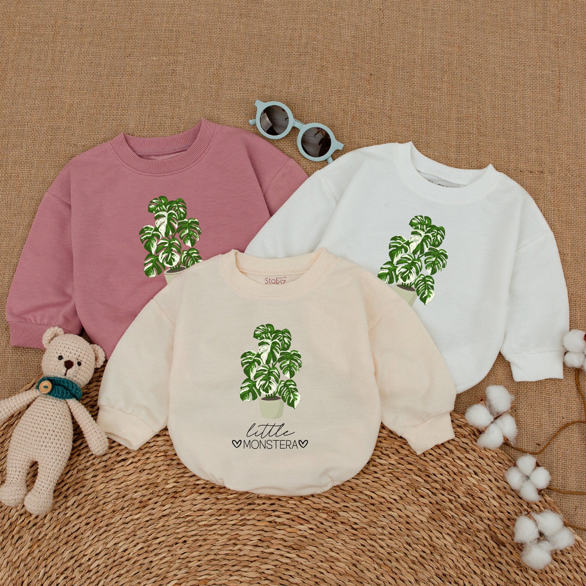 Little Monstera Romper for Baby with Green Leaf Design Gender Neutral Bodysuit Perfect for Baby Shower or Announcement Gift Soft Cotton