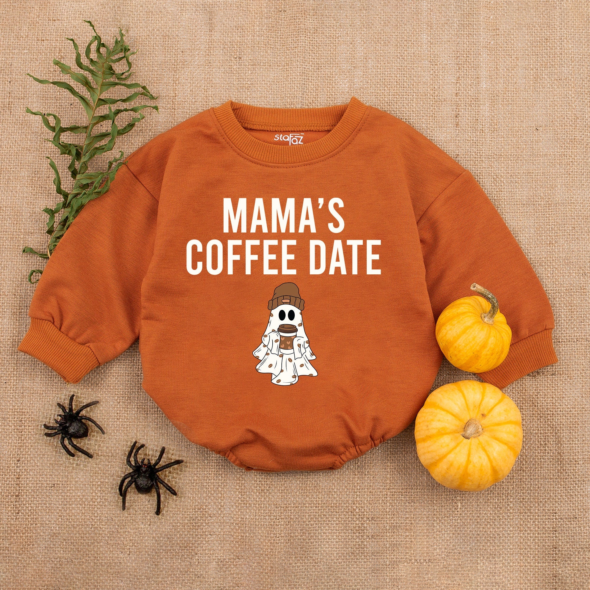 Mama's Coffee Date Halloween Bodysuit Baby Girl First Outfit Cute Ghost Design Soft Cotton Playful Romper Infant Holiday Wear
