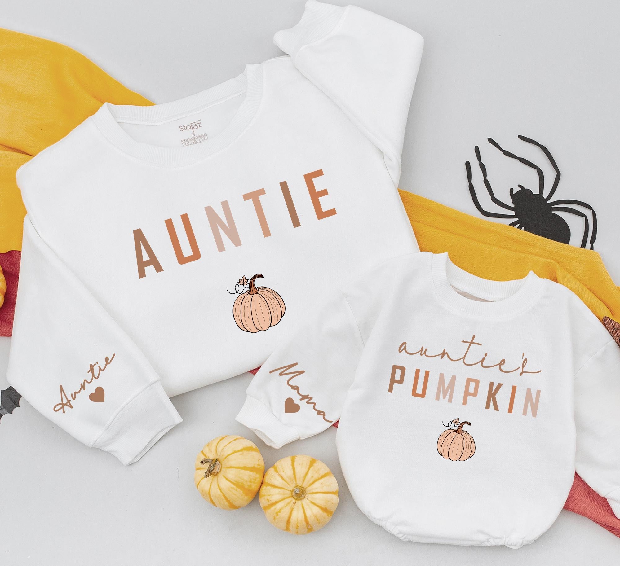 Matching Auntie and Auntie's Pumpkin Sweatshirts Cozy Fall Family Outfits Hand-Drawn Design Thanksgiving Halloween Gift