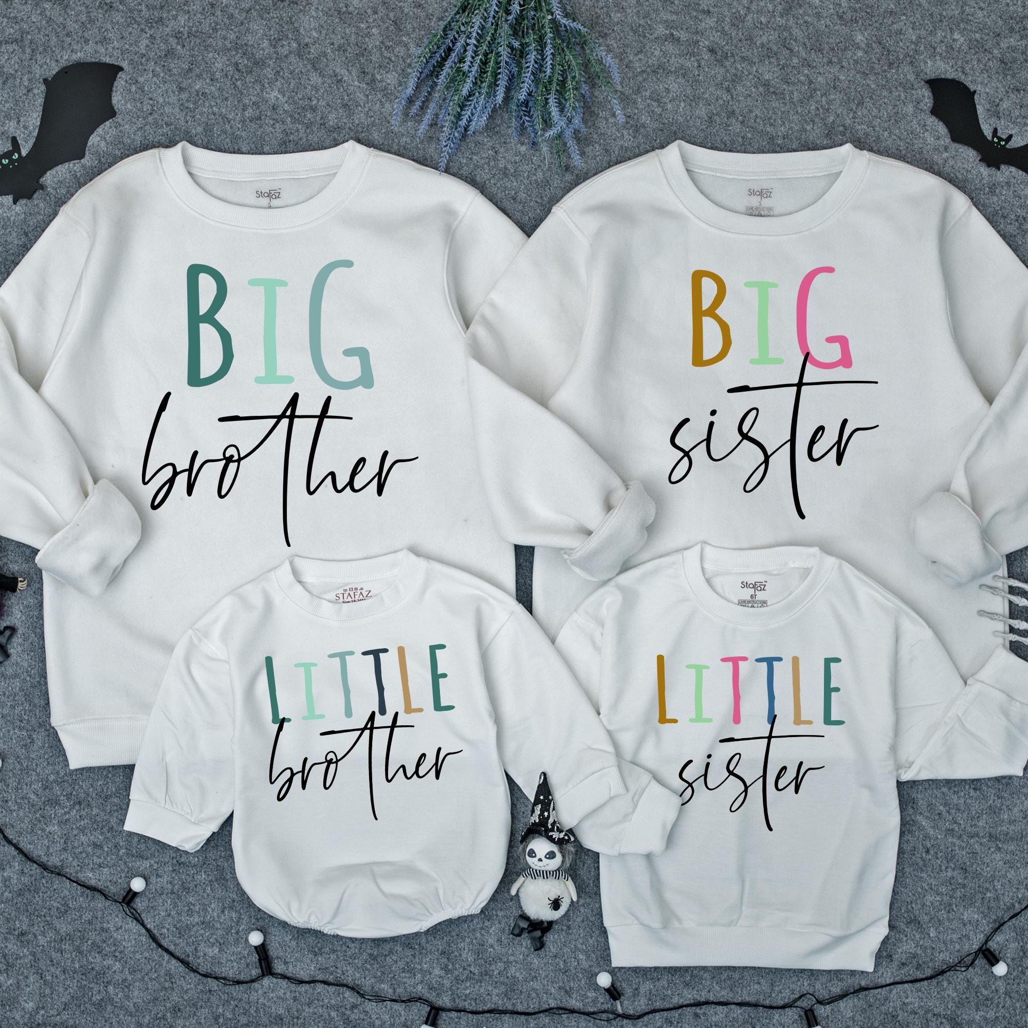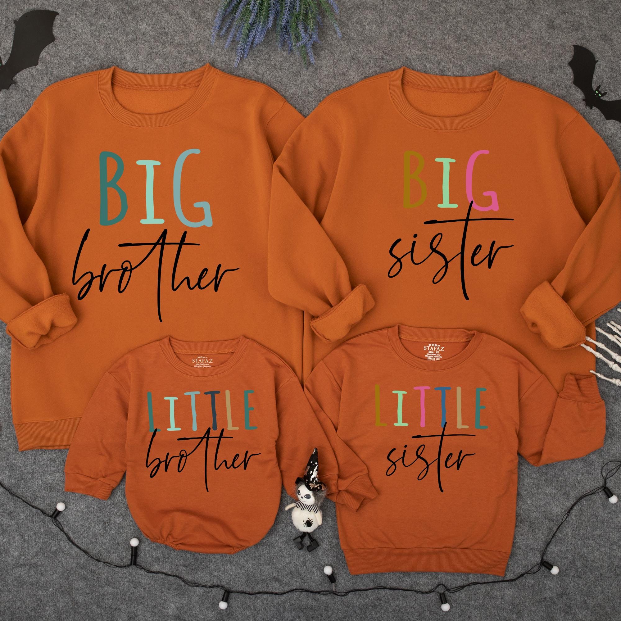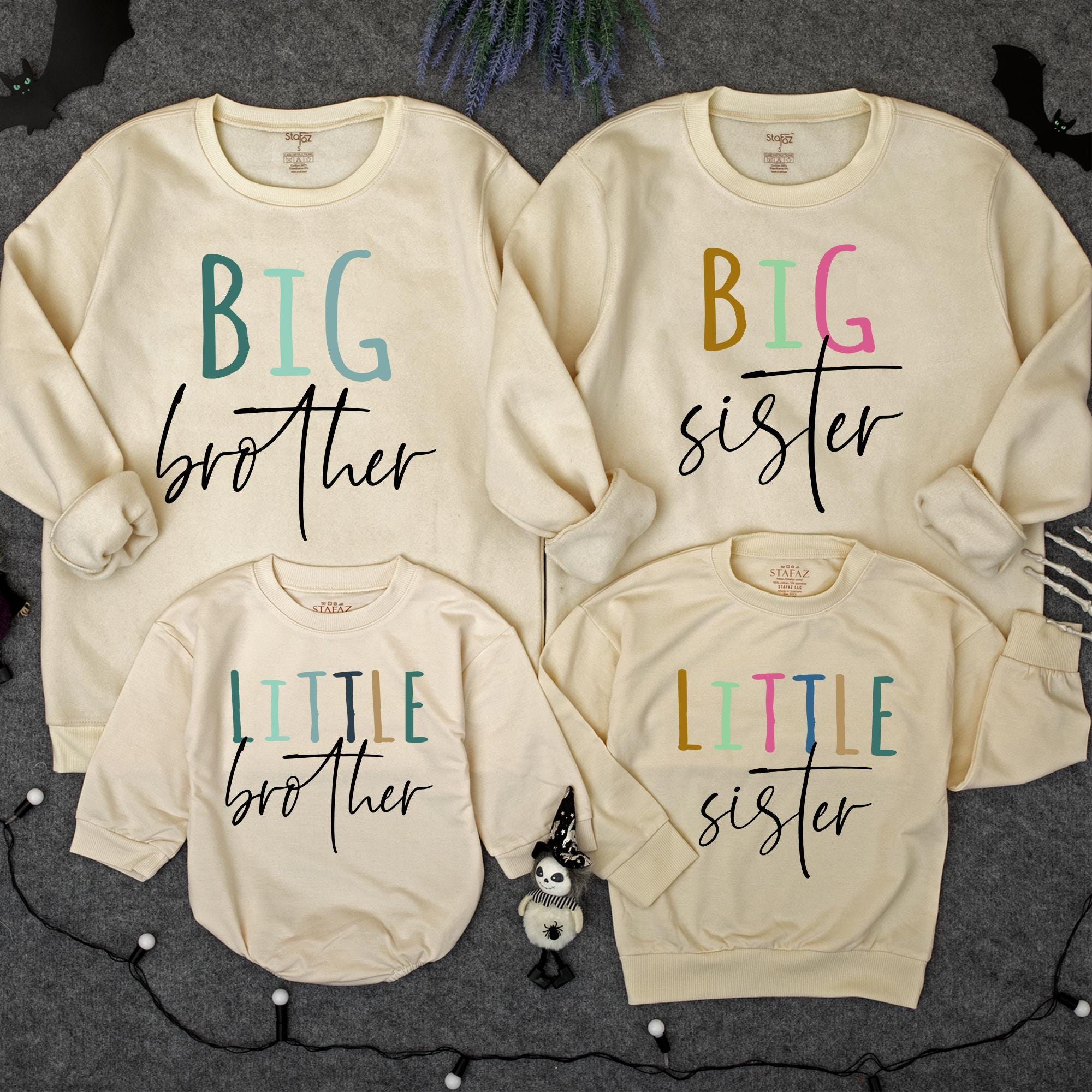 Matching Sibling Outfits Big Brother Little Sister Personalized Cotton Sweaters Bright Colors Casual Kids Wear Family Gift