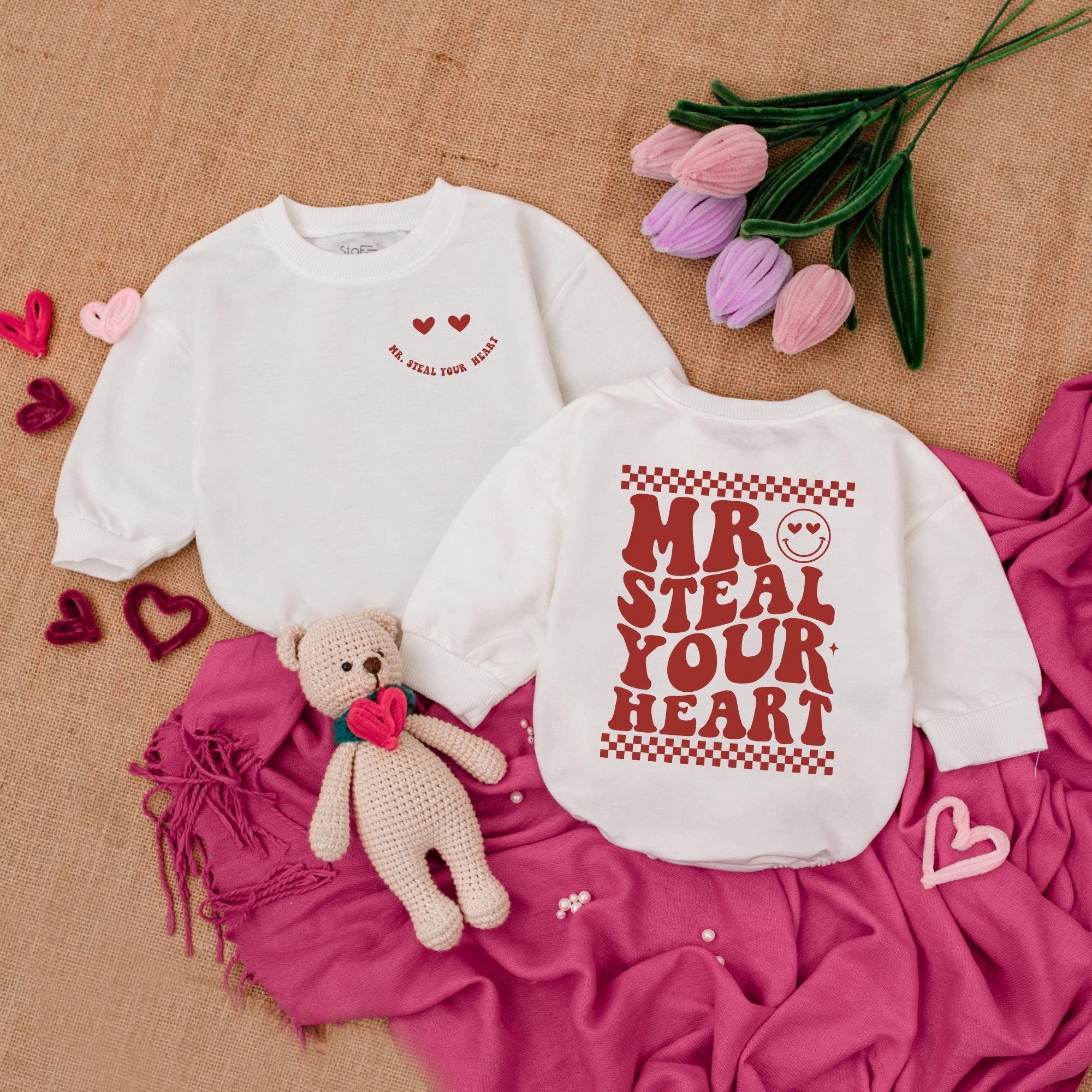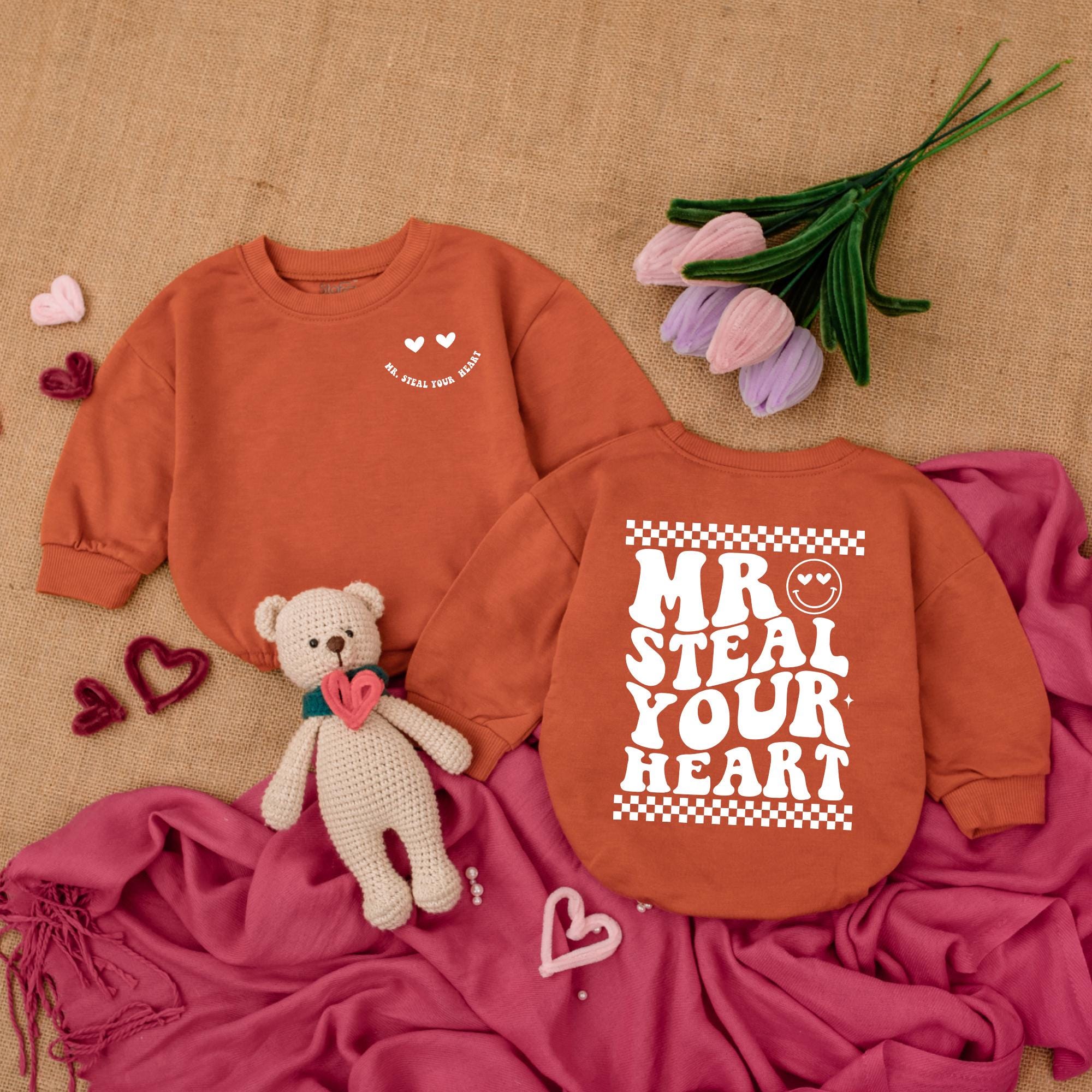 Mr Steal Your Heart Baby Bodysuit with Smiley Face Love Design Newborn Valentine Outfit Soft Cotton Playful Romper for Baby Boys Girls