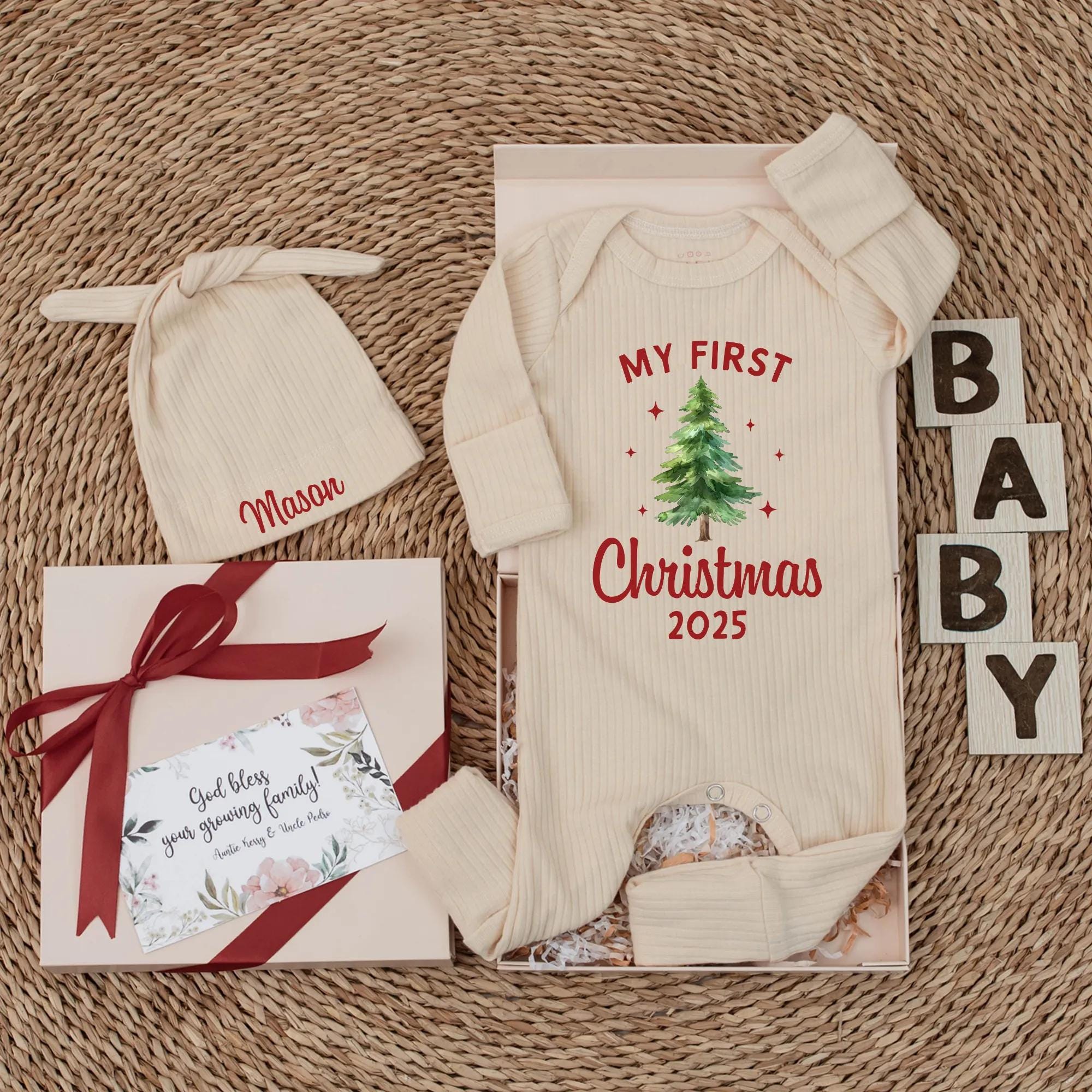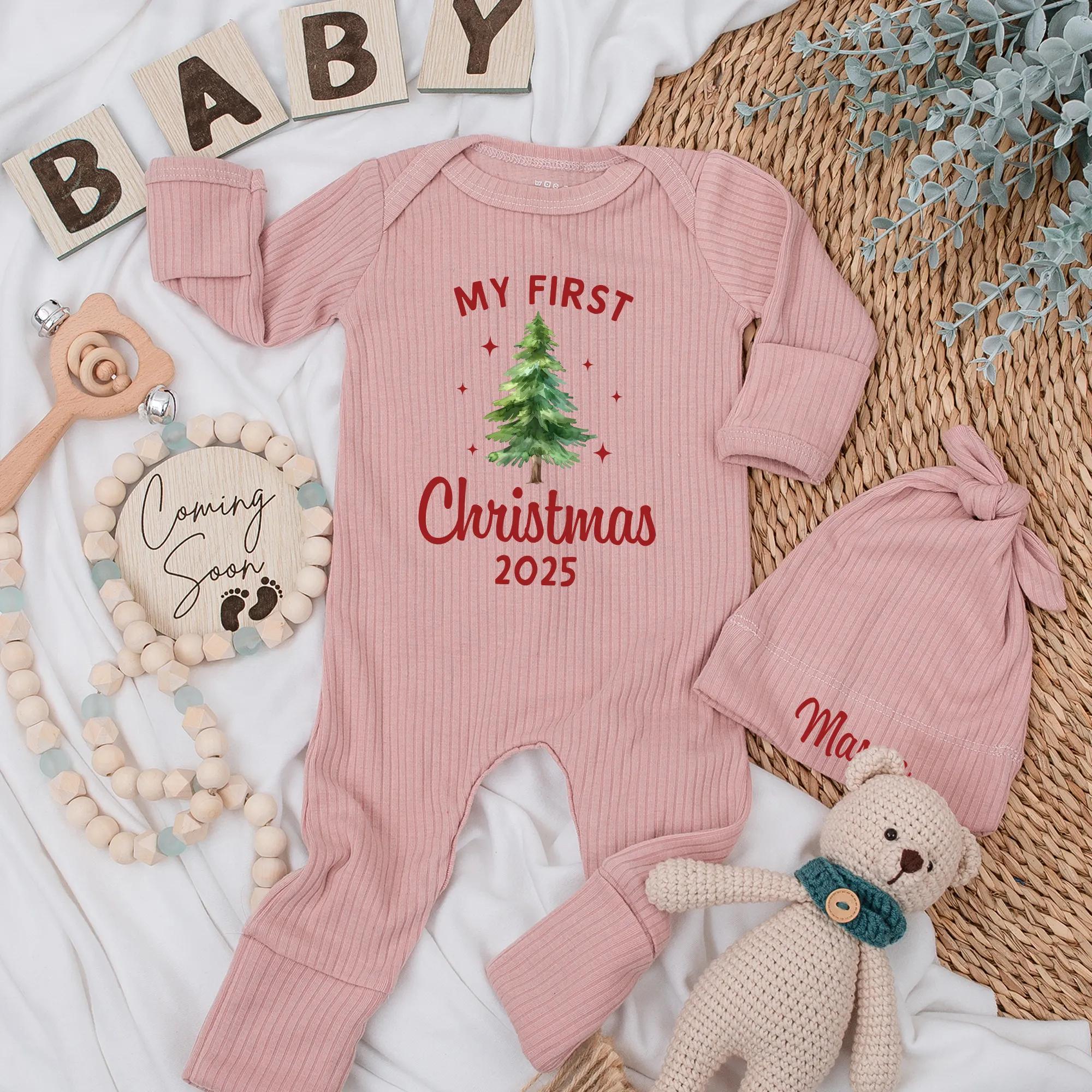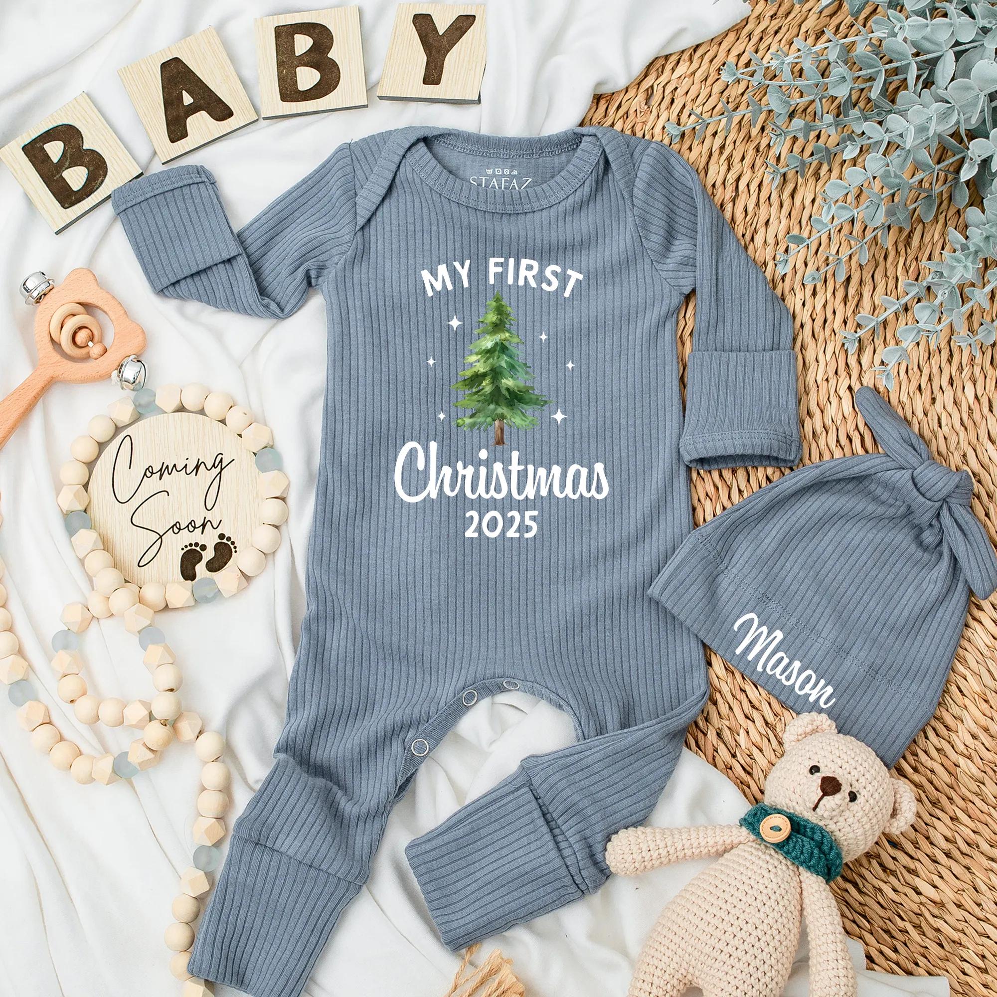 My First Christmas 2025 Baby Bodysuit Custom Outfit Newborn Holiday Tree Gender Neutral Soft Cotton Gift