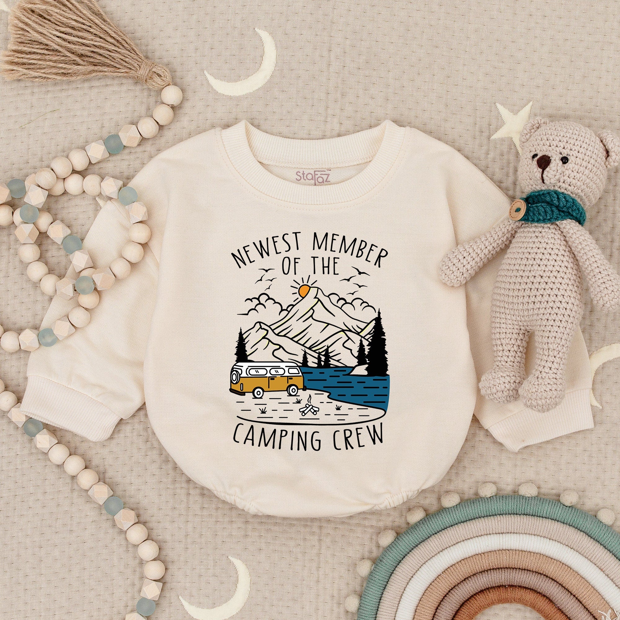 Newest Member Camping Crew Baby Romper Retro Camper Lake Scene Soft Cotton Infant Outfit Adventure Gift Boy Girl Casual Wear