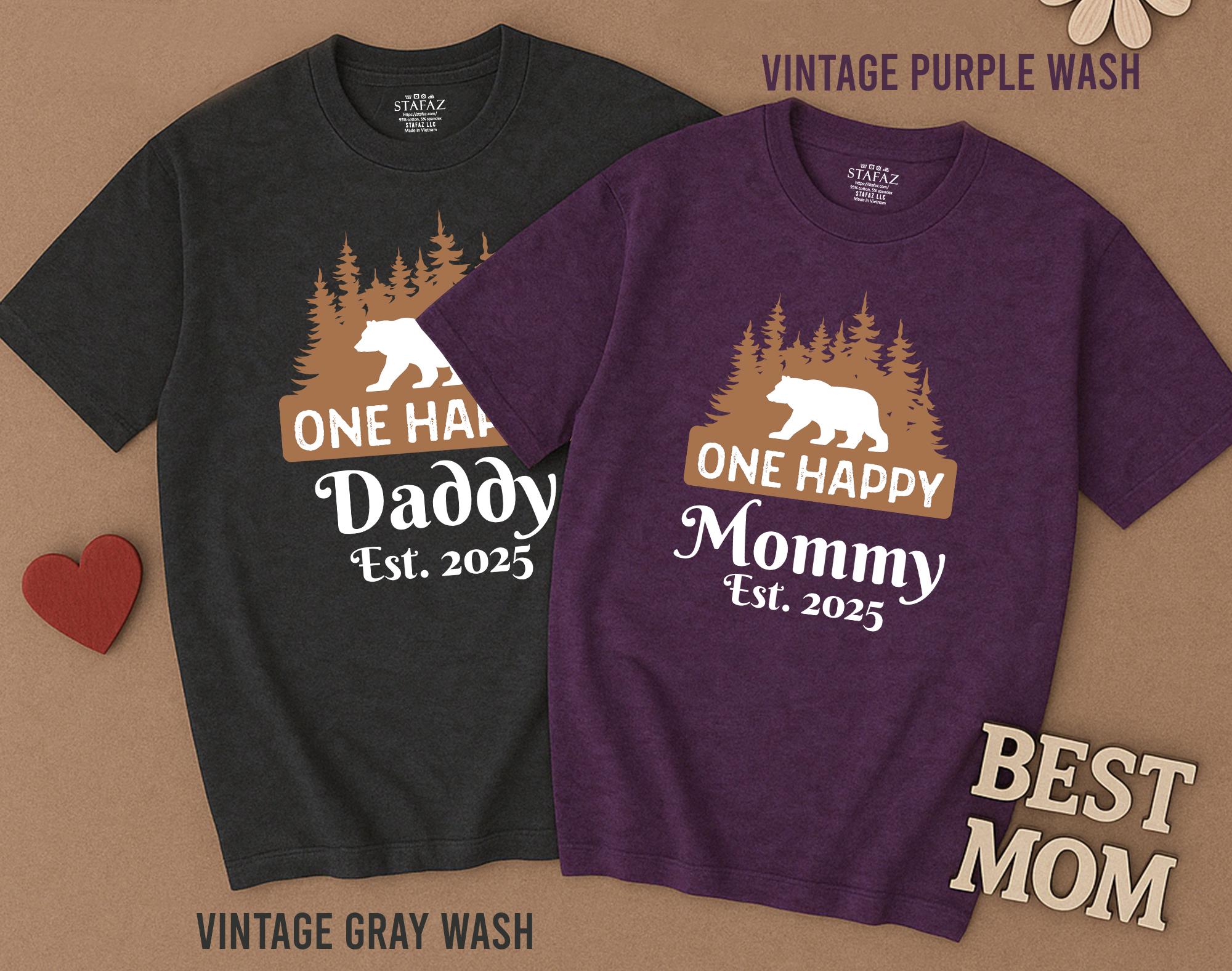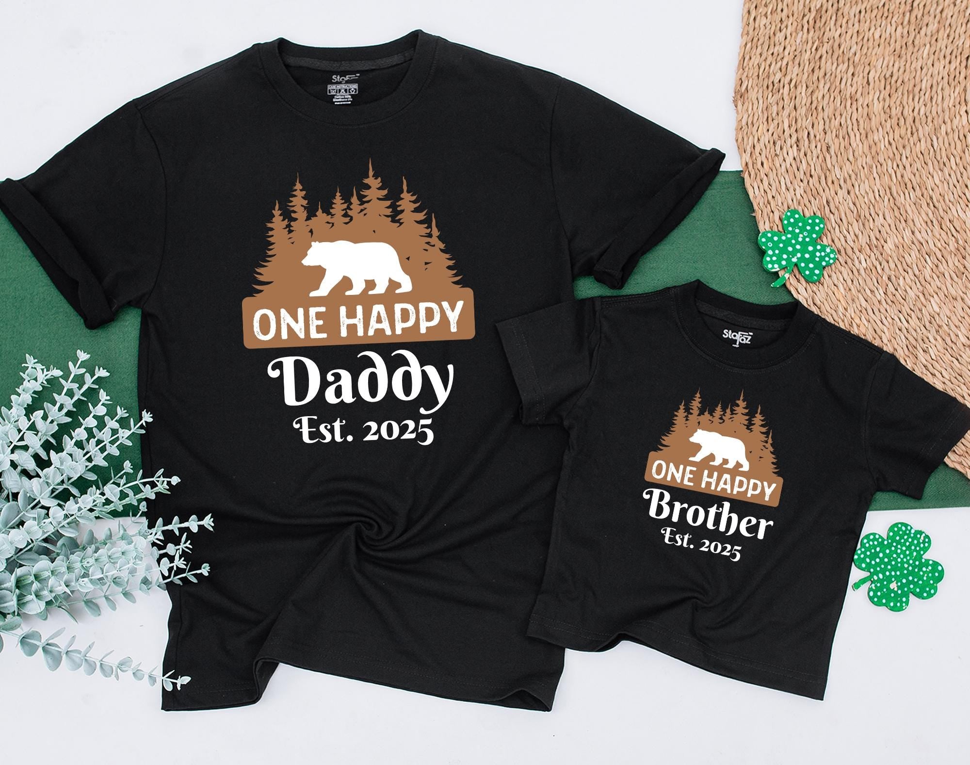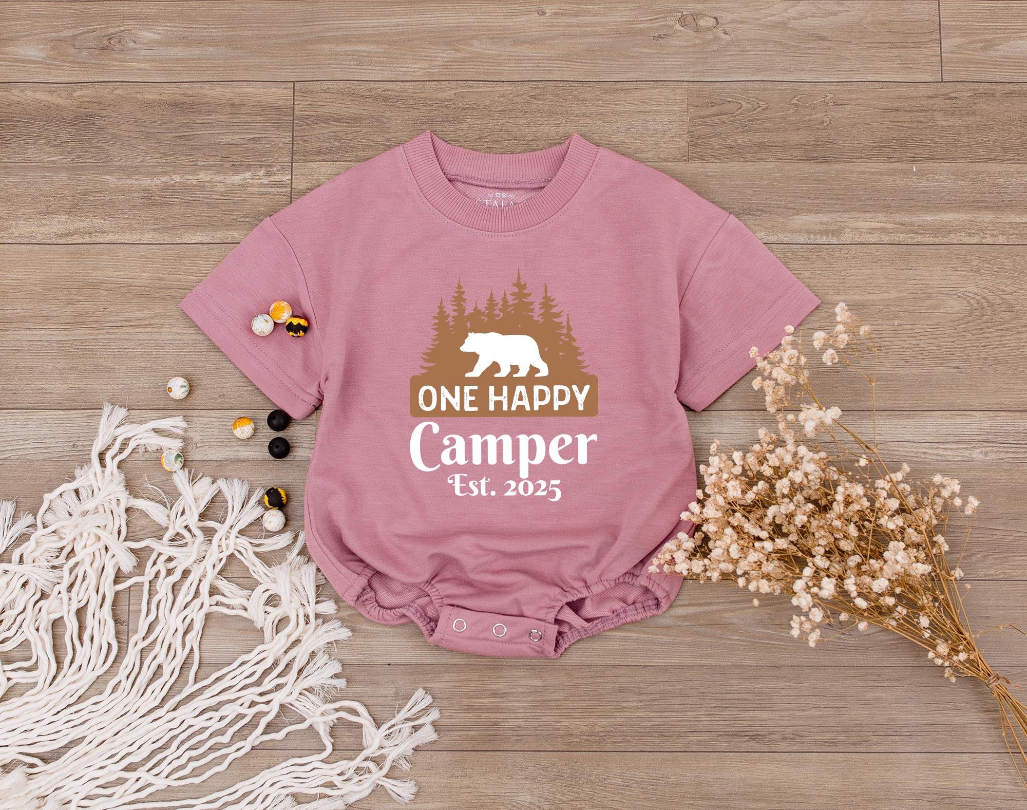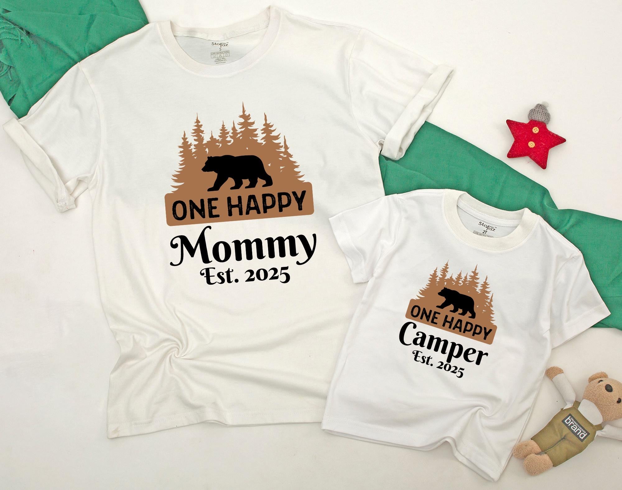 One Happy Camper Family Matching Shirts Personalized Rustic Bear Design Cozy Birthday Outfits Cotton Soft Custom Names Est. 2025 Gift