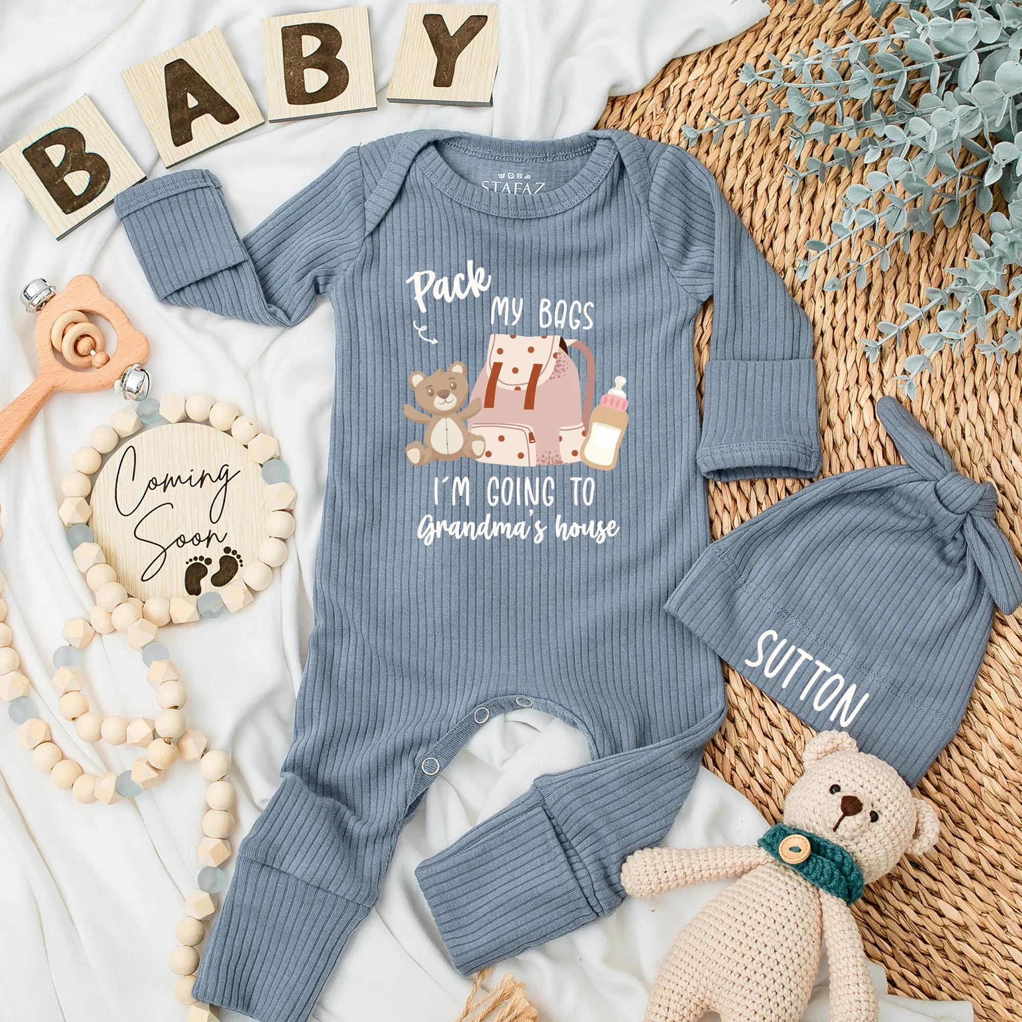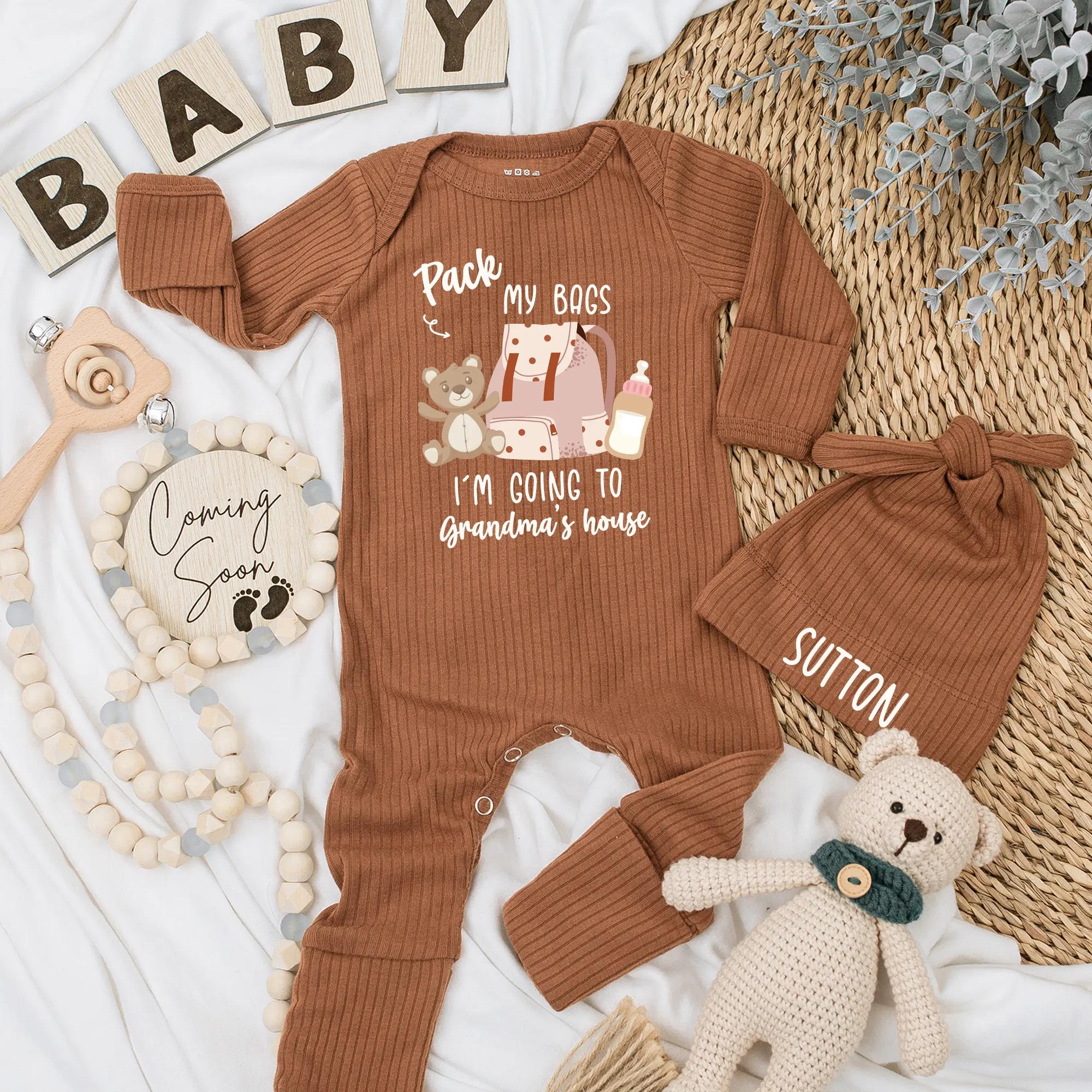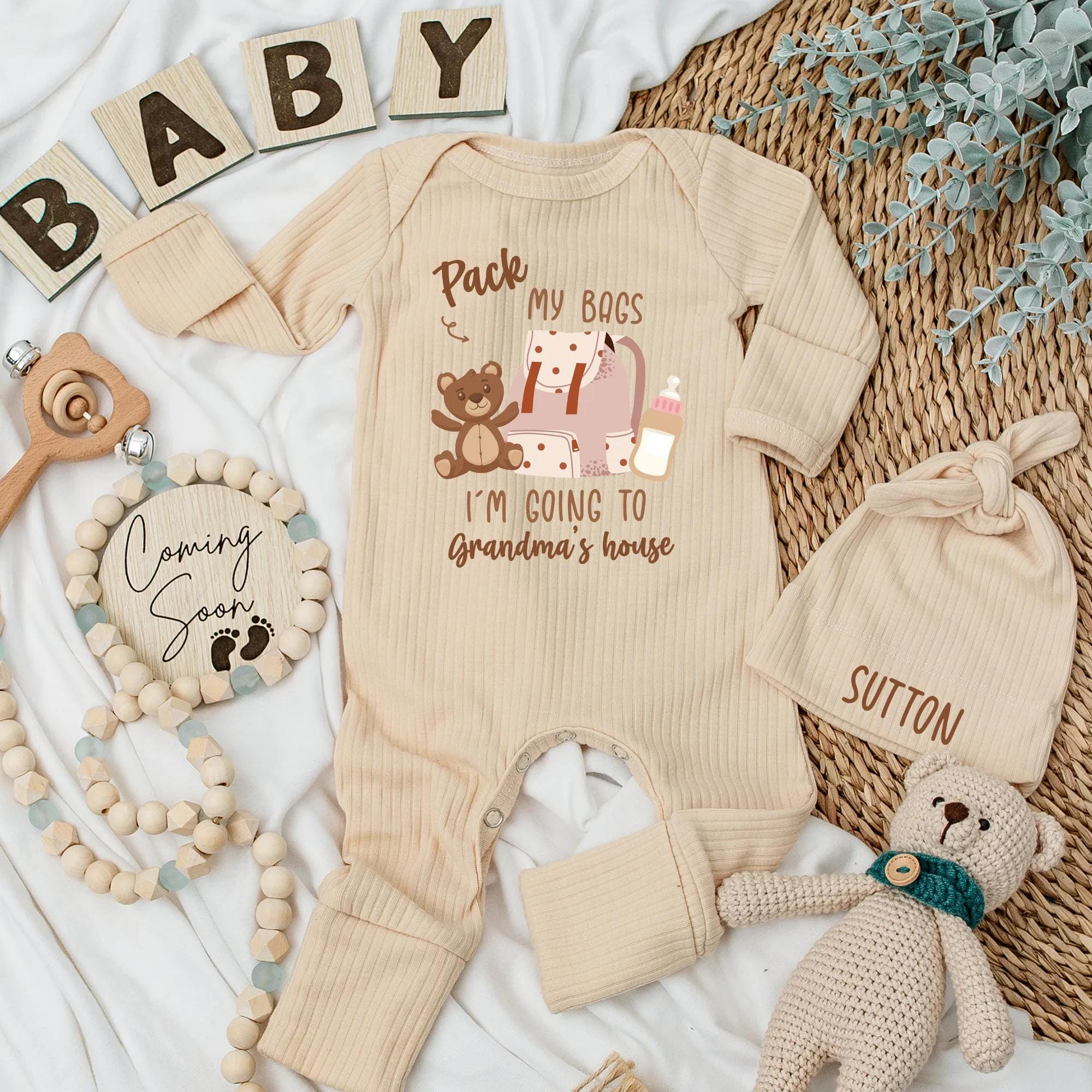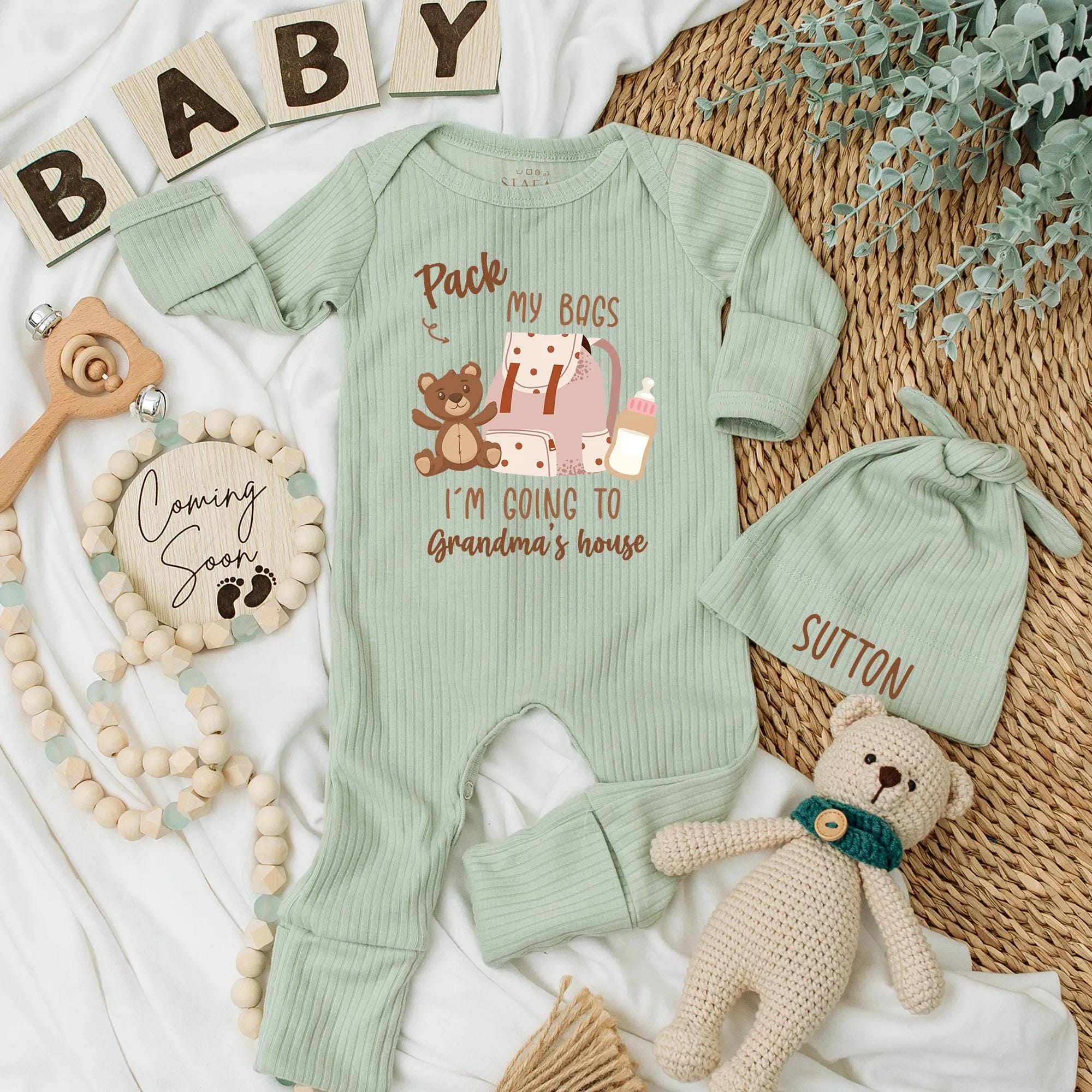 Personalized Baby Bodysuit Pack My Bags I'm Going to Grandma's House Bear Design Newborn Outfit Soft Cotton New Grandparent Gift
