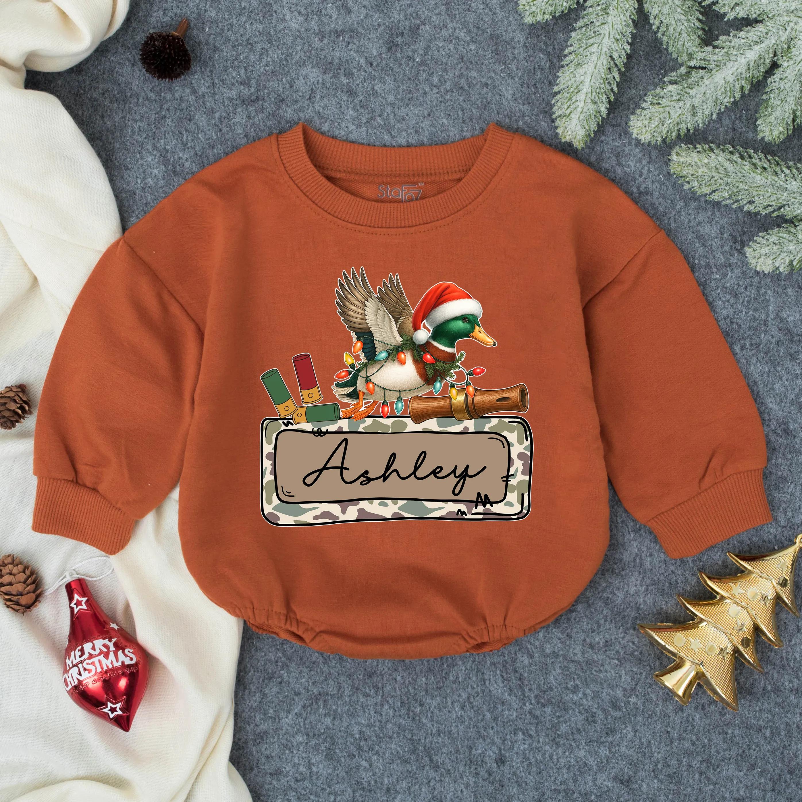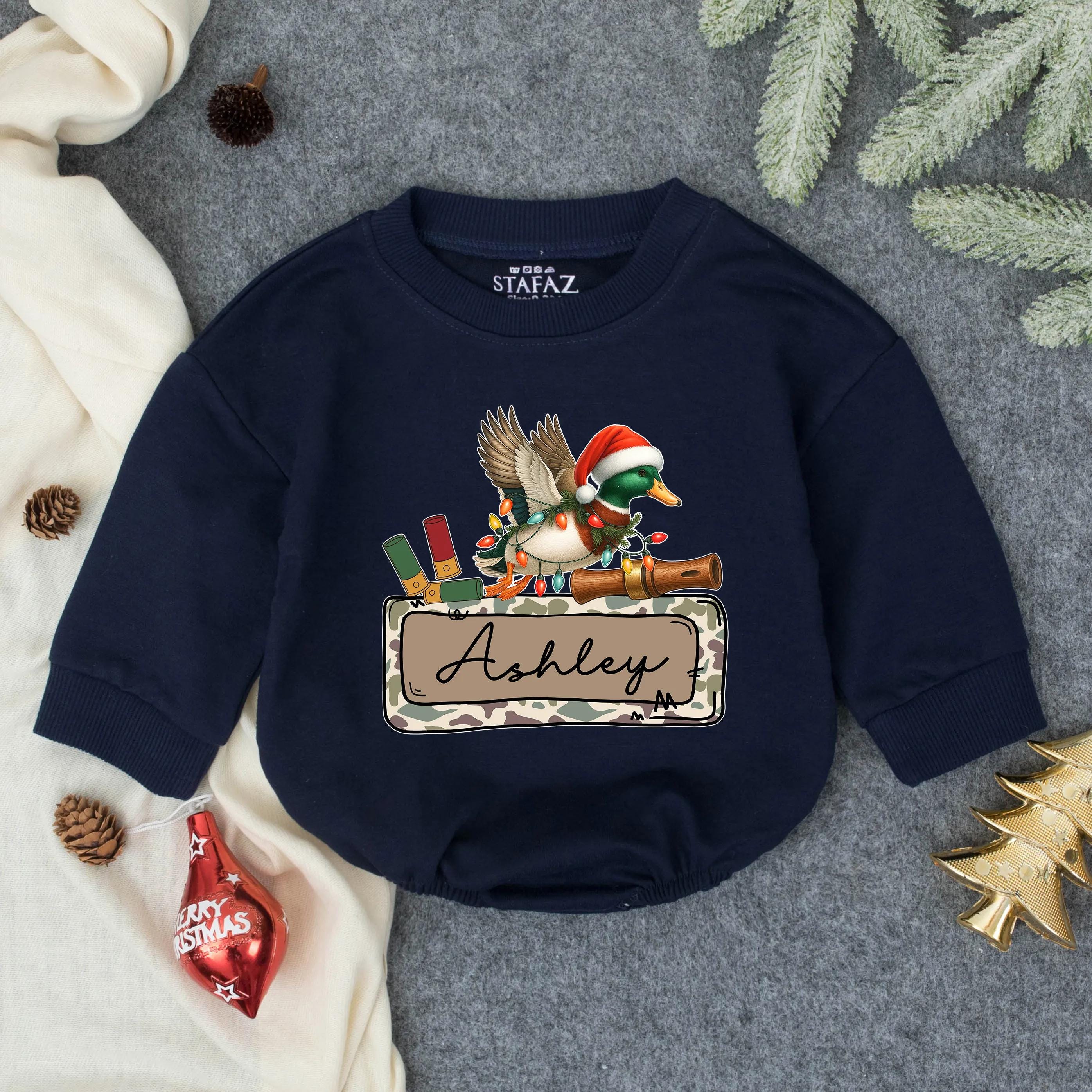 Personalized Baby Boy Christmas Romper Festive Mallard Duck Outfit Holiday Gift Custom Name Ashley Soft Cotton