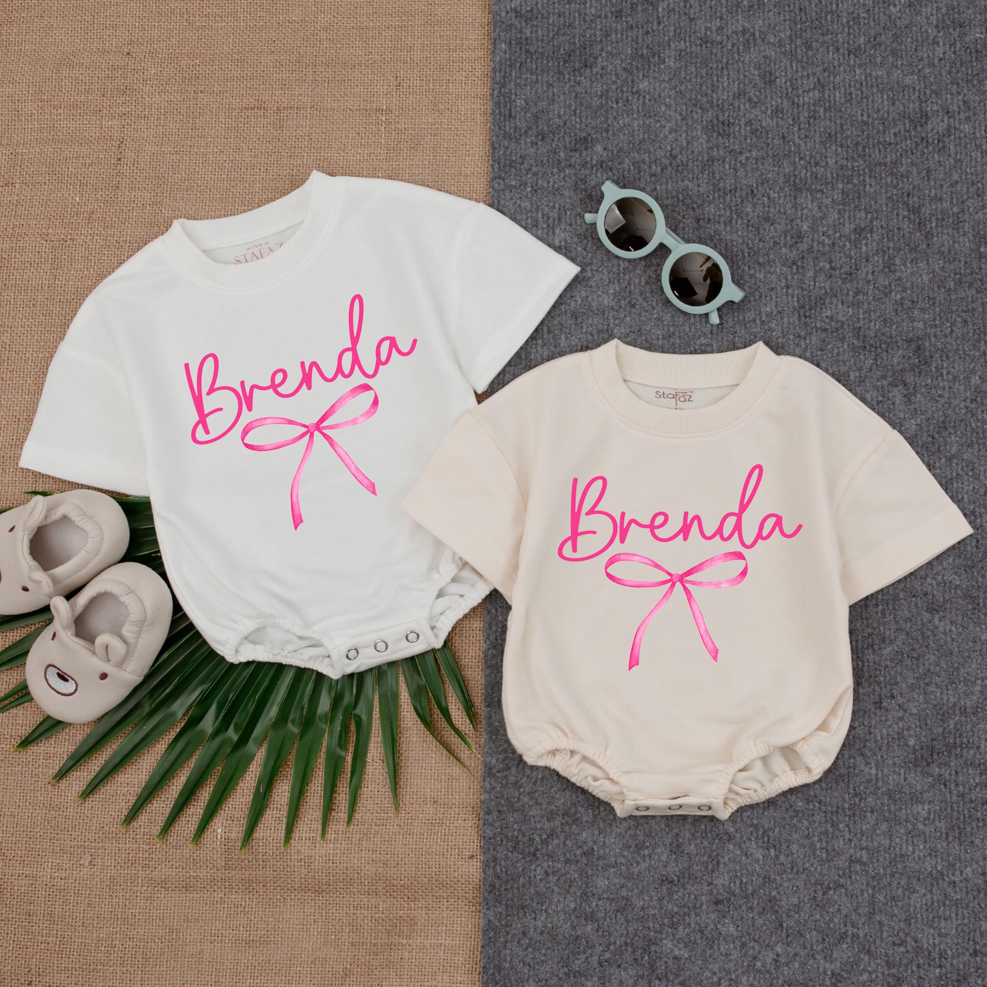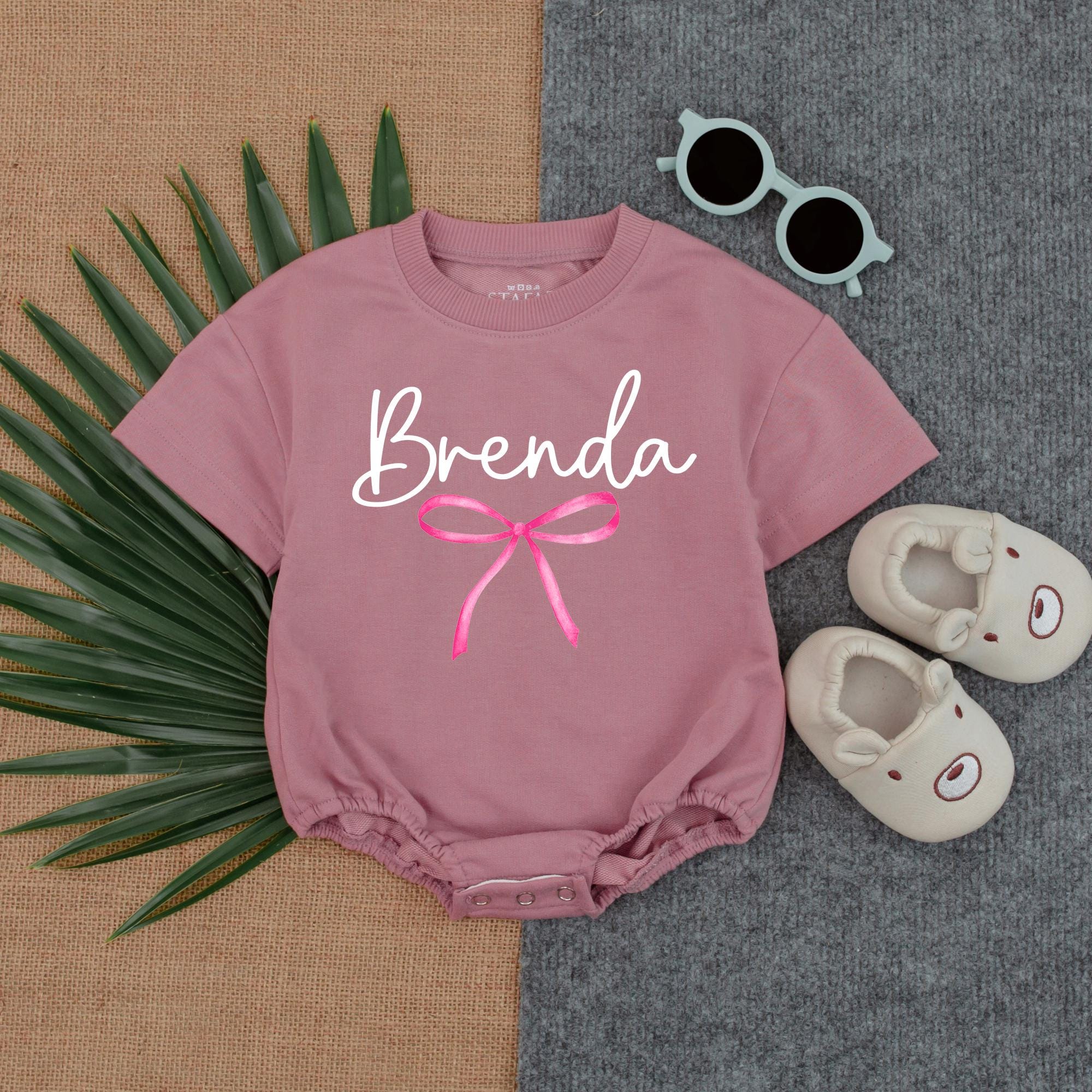 Personalized Baby Girl Romper with Pink Bow and Name Brenda Sweet Infant Outfit Cotton Baby Shower Gift Idea Comfortable Clothing