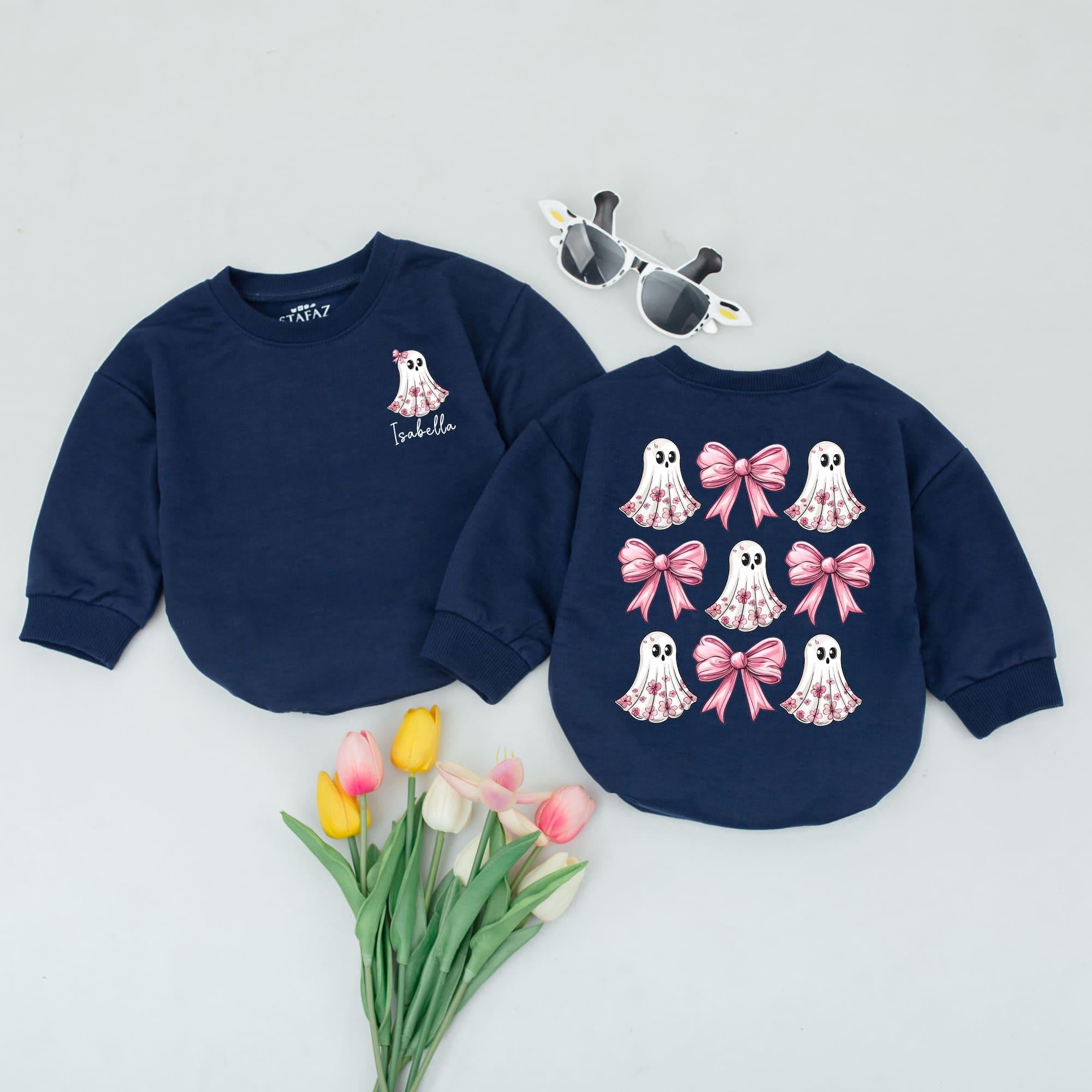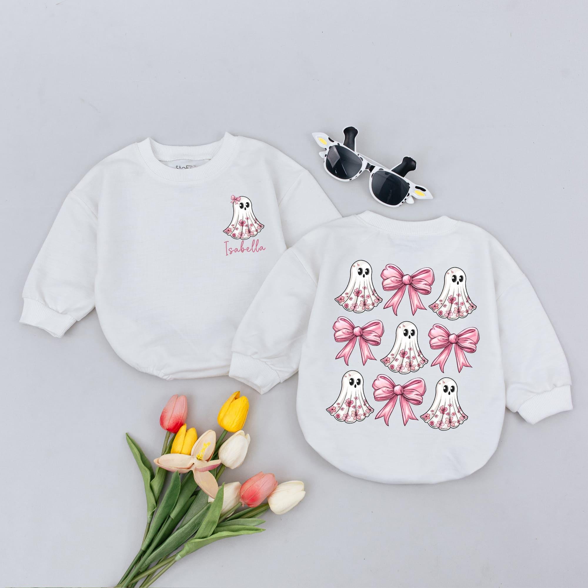 Personalized Baby Halloween Romper Adorable Ghost Bow Design Cozy Fall Bodysuit Newborn Outfit Soft Cotton Custom Name Boo-tiful