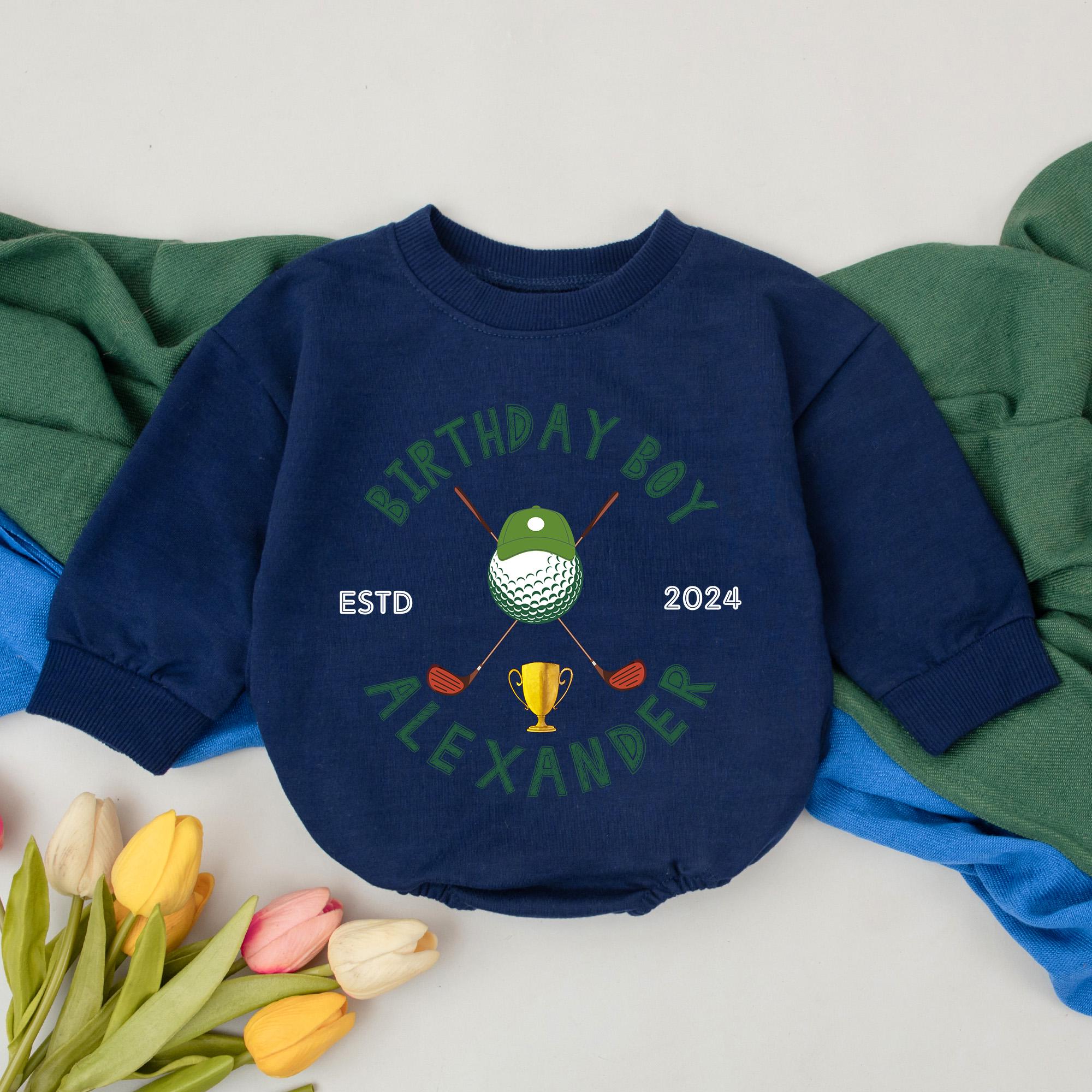 Personalized Golf Birthday Romper for Baby Boy Custom Alexander Green Tee 2024 Gift First Celebration Soft Cotton Playful Motif