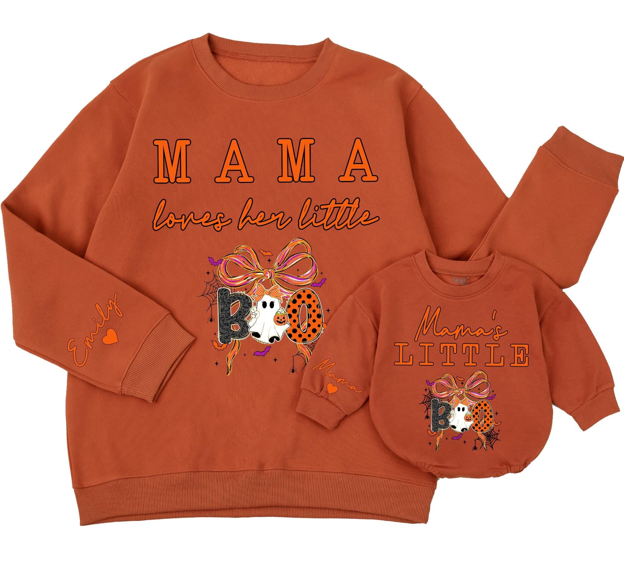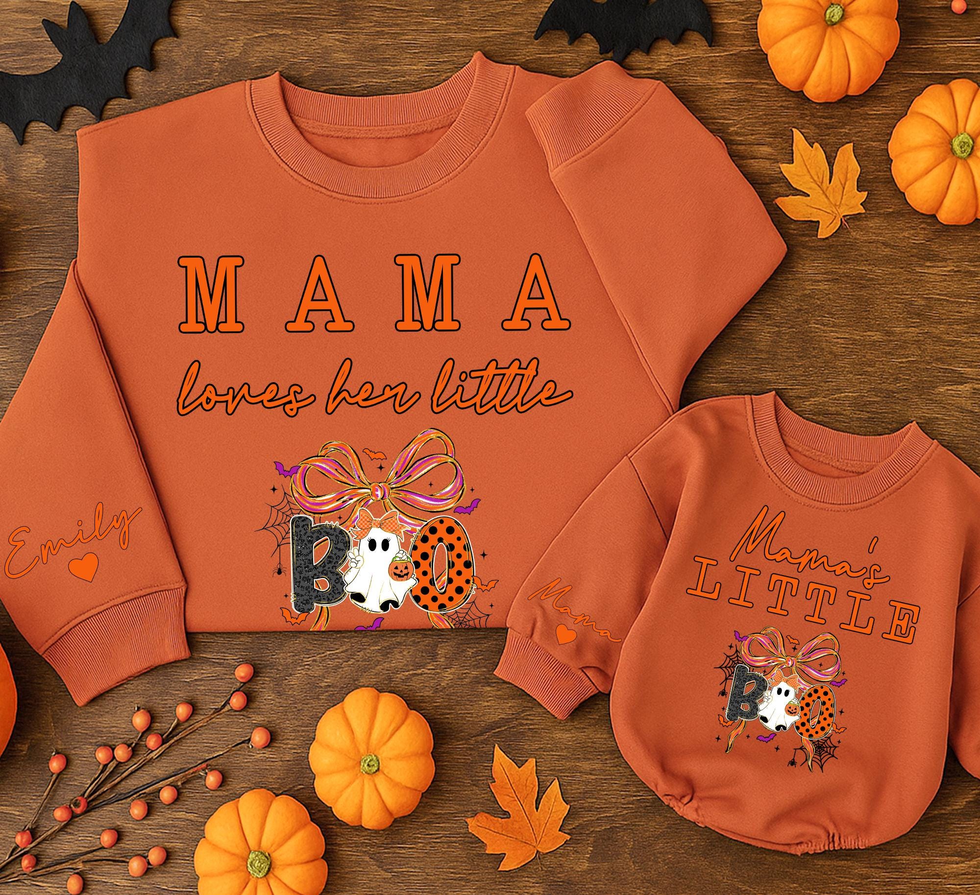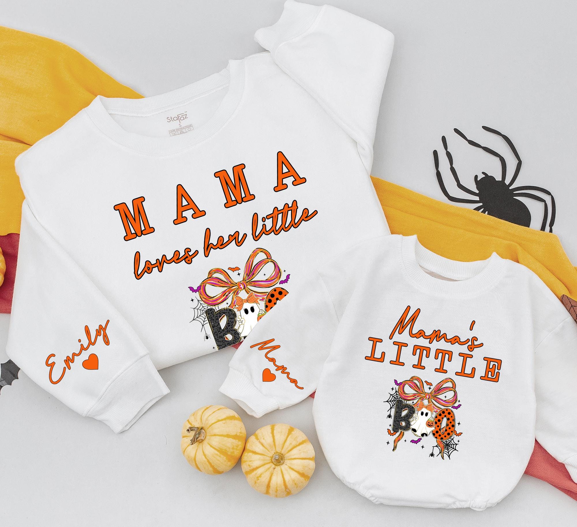 Personalized Mama Loves Her Little Boo Halloween Sweatshirts Custom Name Matching Family Fall Outfits Soft Cotton Toddler Gift