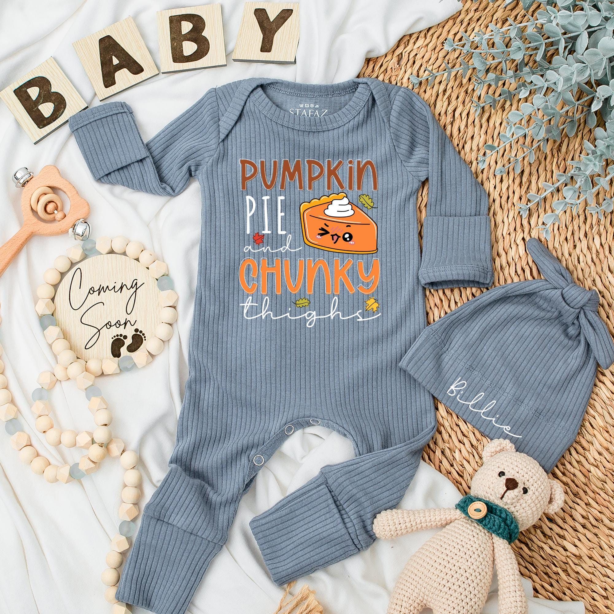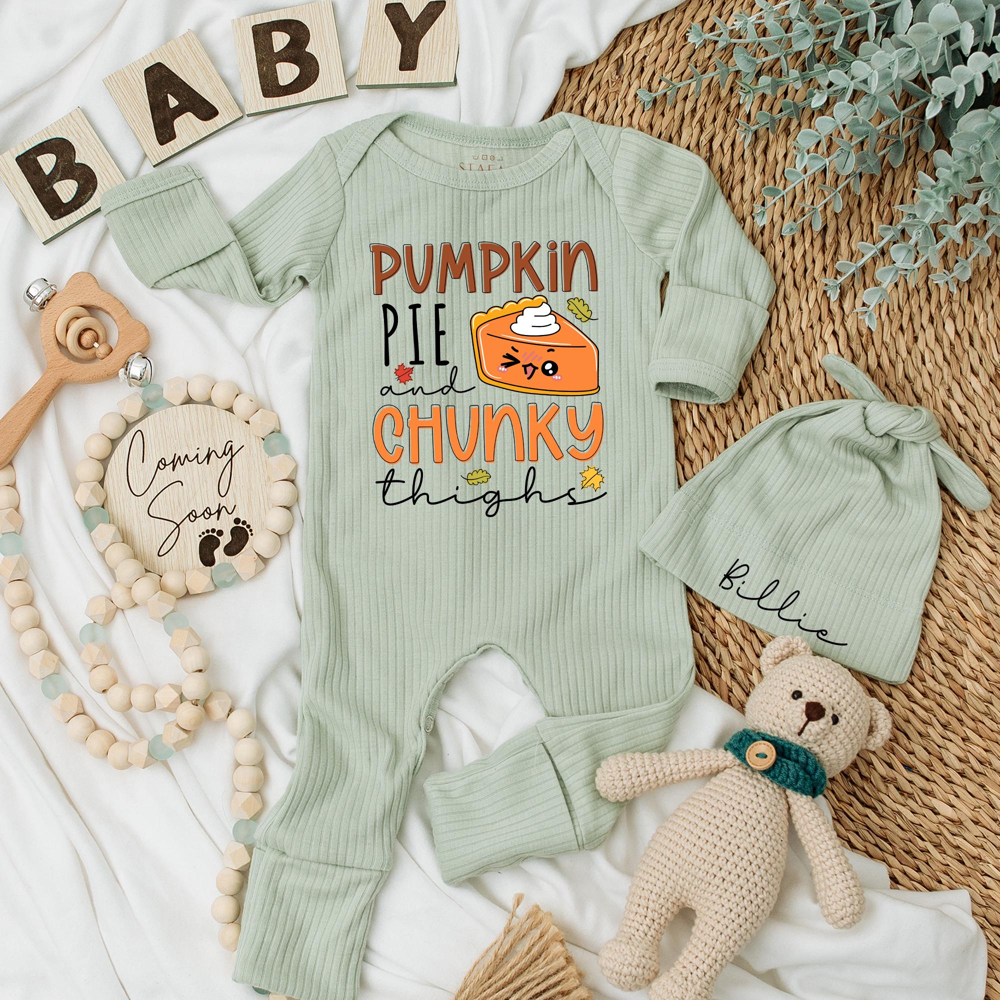 Personalized Pumpkin Pie and Chunky Thighs Baby Bodysuit Cute Fall Thanksgiving Outfit Soft Cotton Newborn Baby Shower Gift