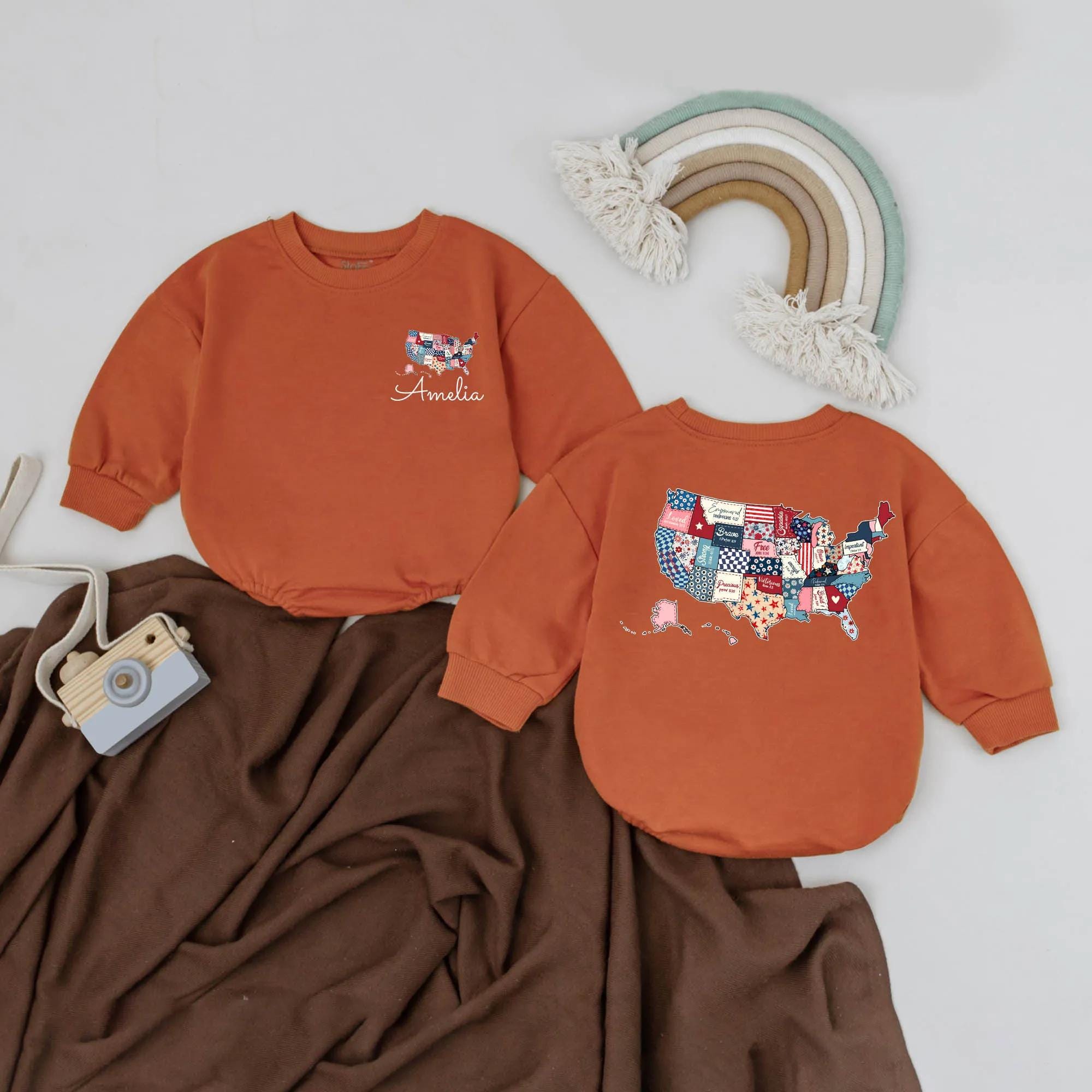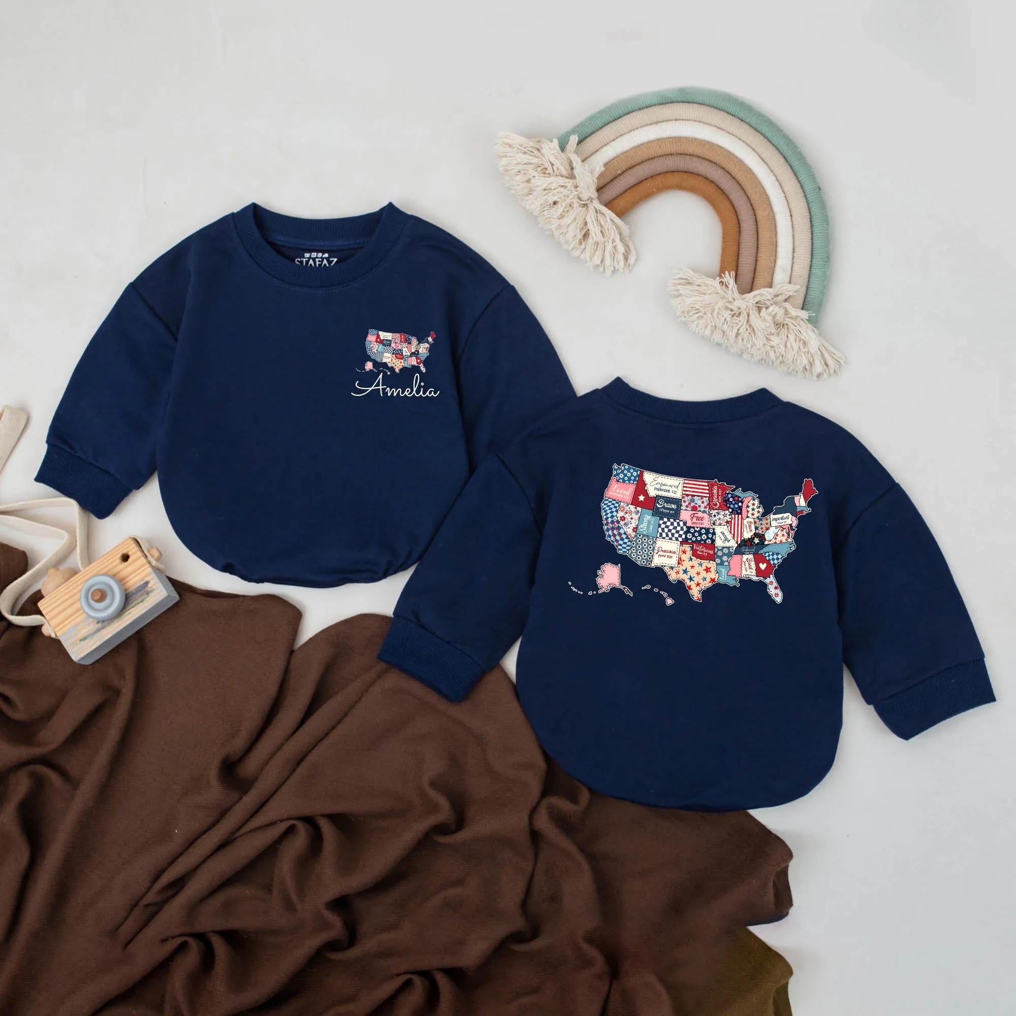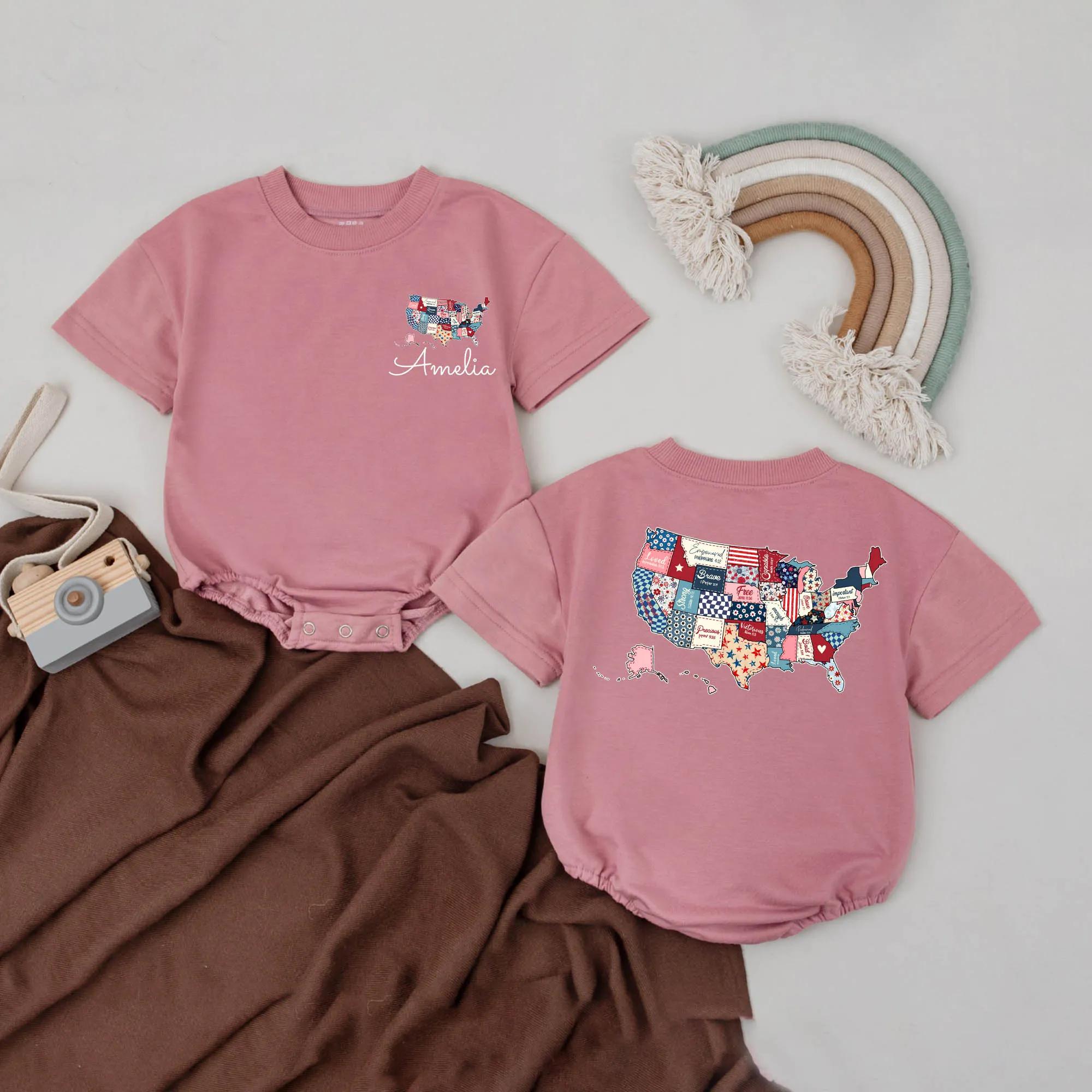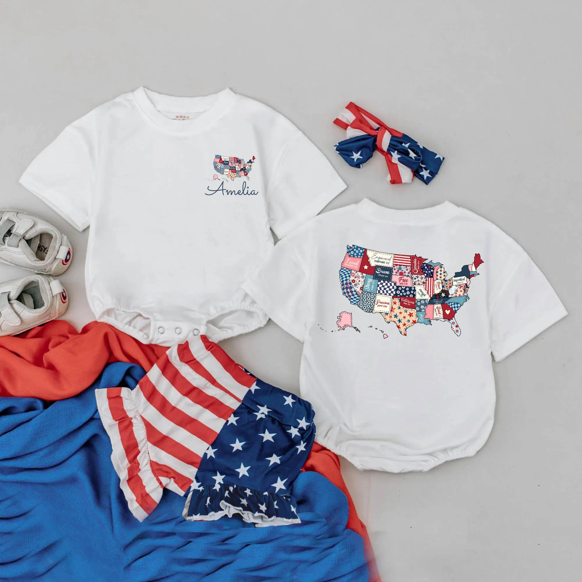 Personalized USA Map Baby Romper Patriotic Red White Blue 4th of July Outfit Custom Name Boys Girls Gift Comfortable Cotton Wear