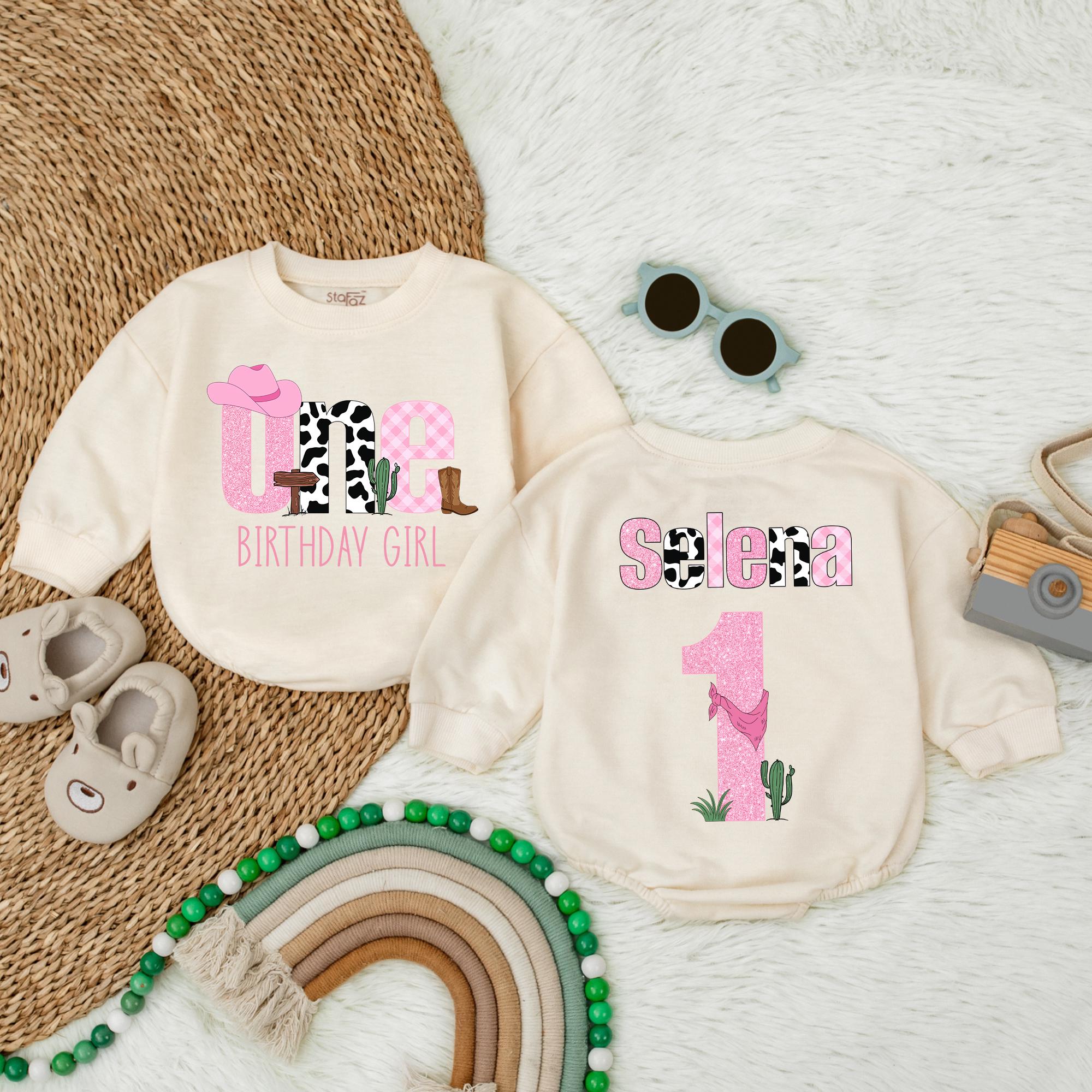 Selena's First Birthday Romper with Western Cowgirl Theme Personalized Outfit for Baby Girl Celebration Soft Comfortable Cotton Design
