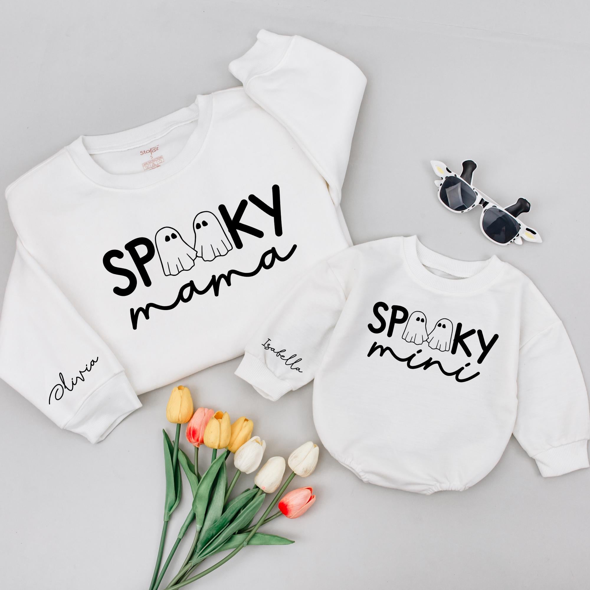 Spooky Mama and Mini Matching Halloween Shirts Cozy Mom Baby Outfit Fun Ghost Design Personalized Festive Family Costume Cotton Gift