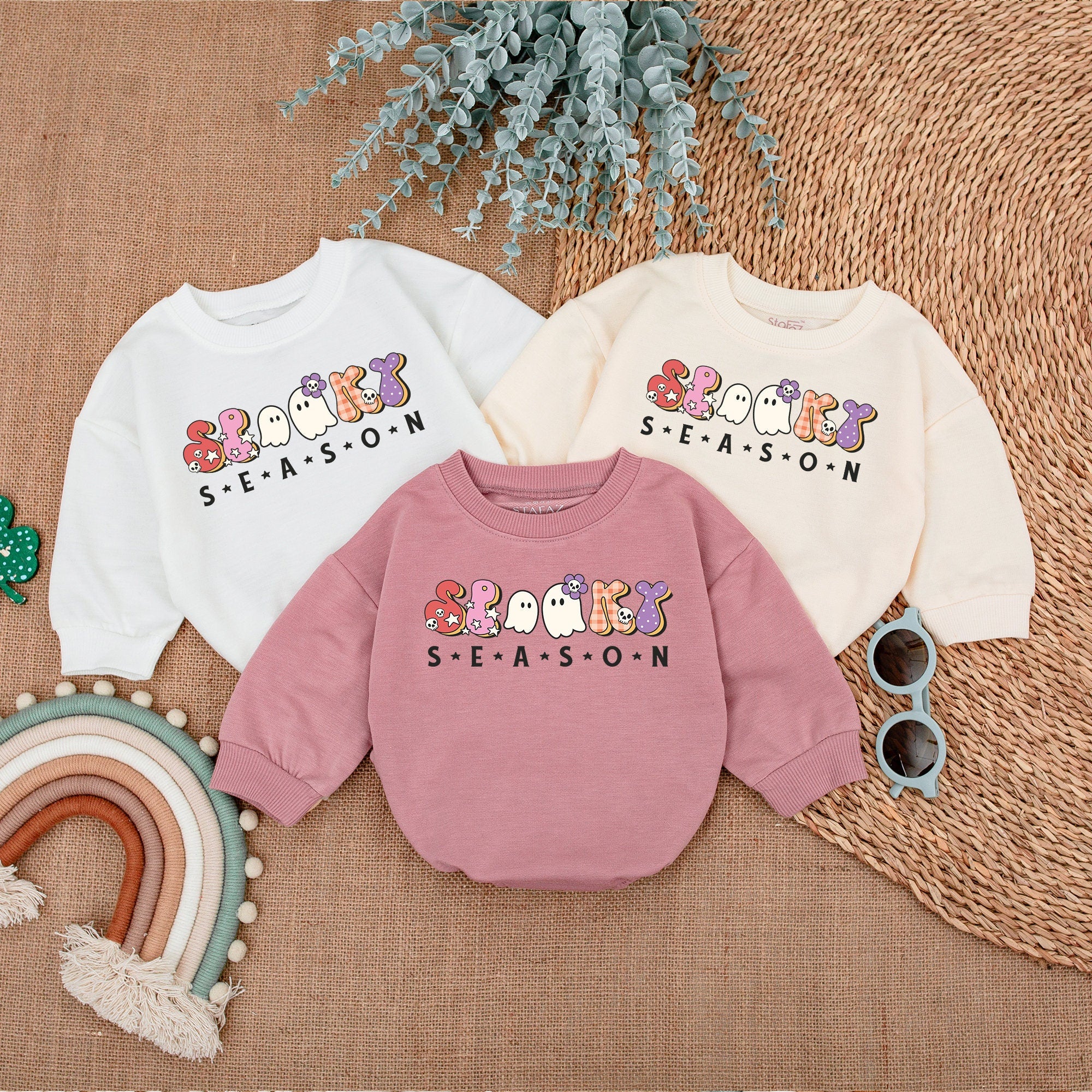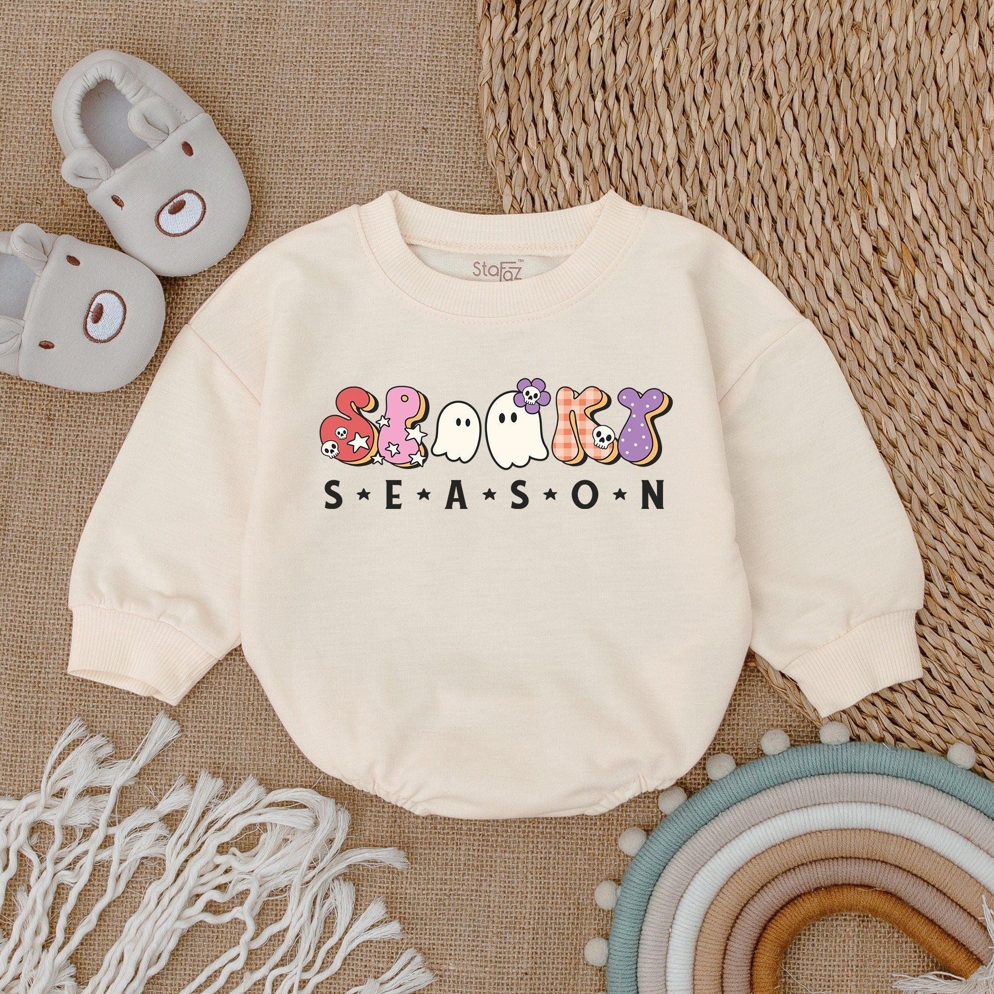 Imagine the joy of dressing your little one in a playful outfit that perfectly captures the spirit of Halloween. The 'Spooky Season' romper features colorful letters adorned with charming Halloween-themed elements like ghosts, pumpkins, and spider webs, creating a whimsical design that delights both parents and children alike. Crafted from soft, comfortable cotton, this romper is perfect for your baby's first Halloween celebration, whether it's a cozy night at home or a festive holiday gathering with family and friends. With each letter bringing a splash of color in red, white, orange, and purple, the romper adds a touch of festive fun to any occasion. Picture your baby giggling in this adorable outfit, capturing memories that you'll cherish forever. So why wait? Make this Halloween unforgettable with an outfit that celebrates the magic of the season.