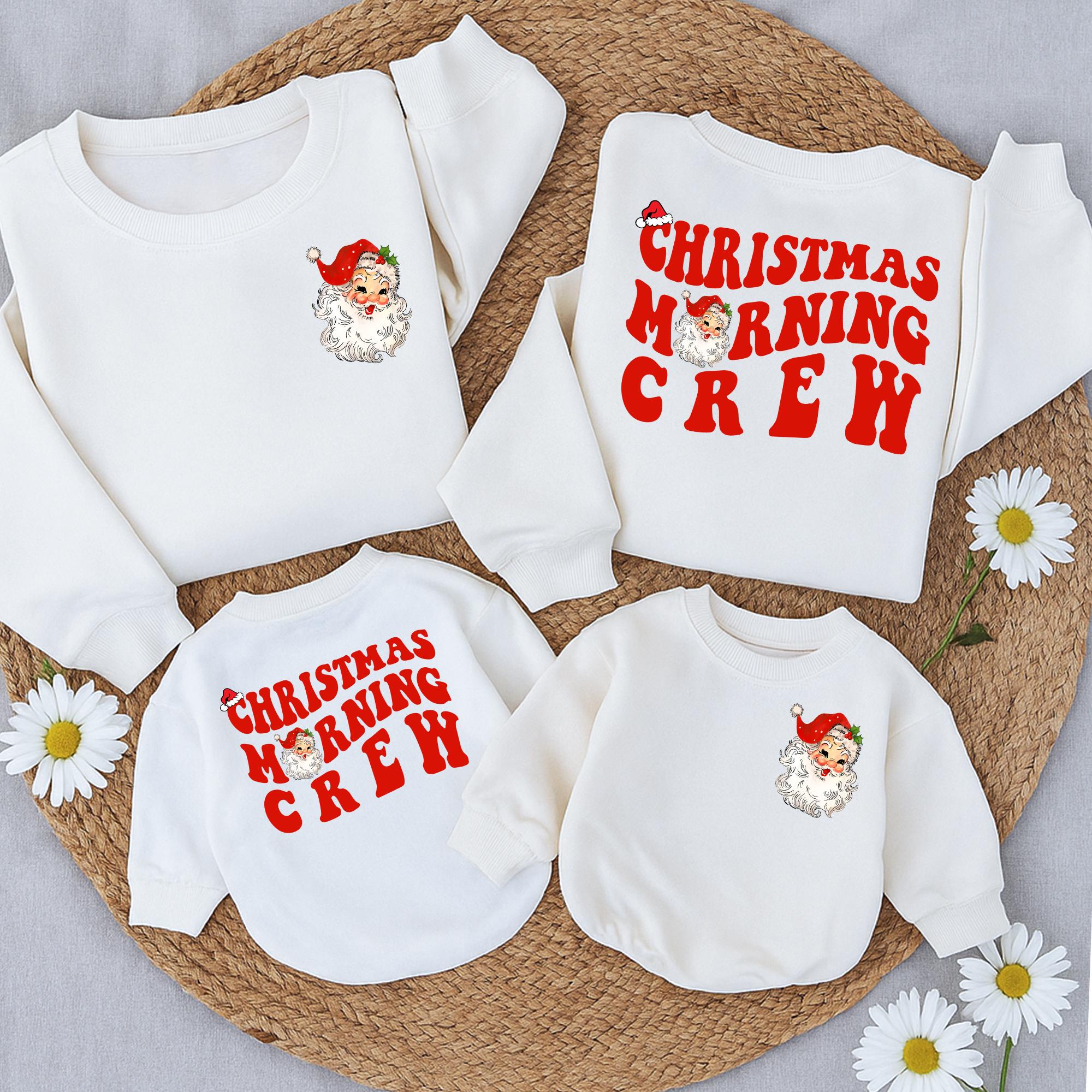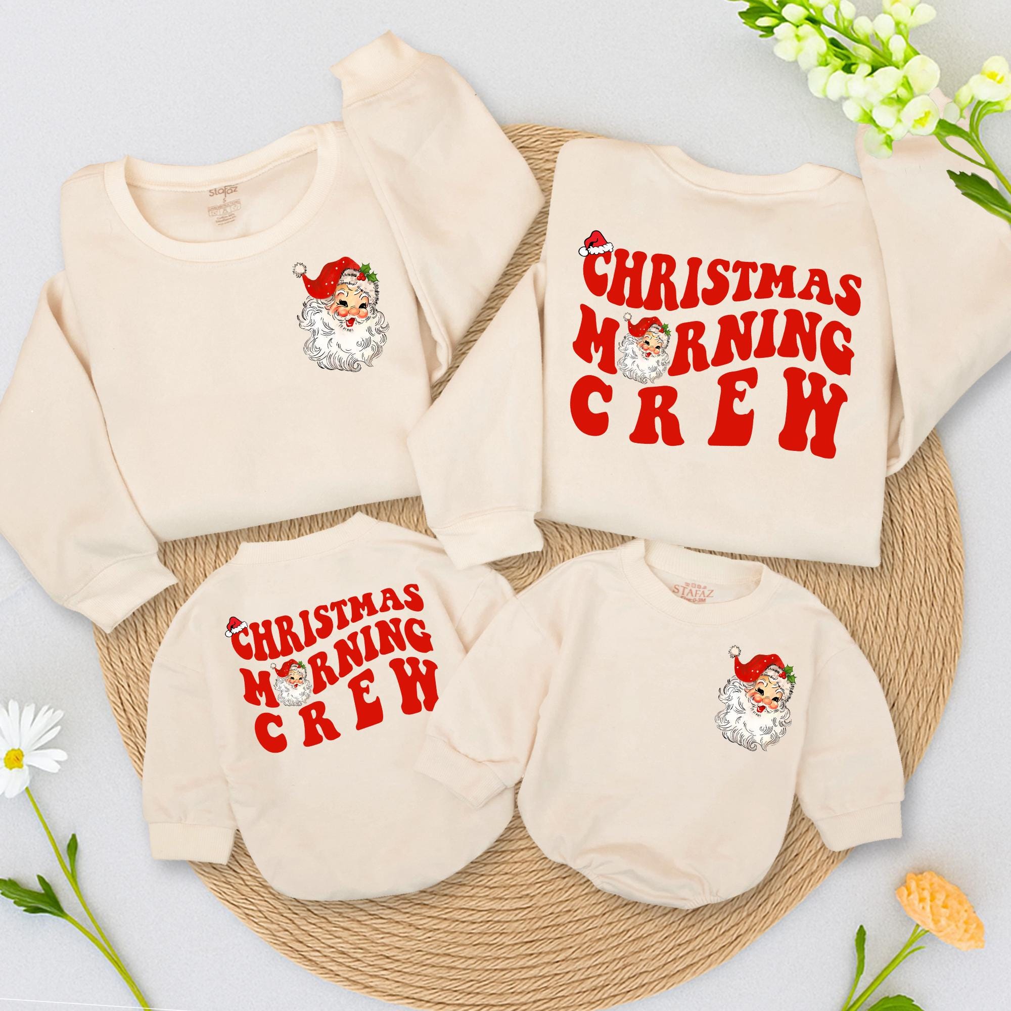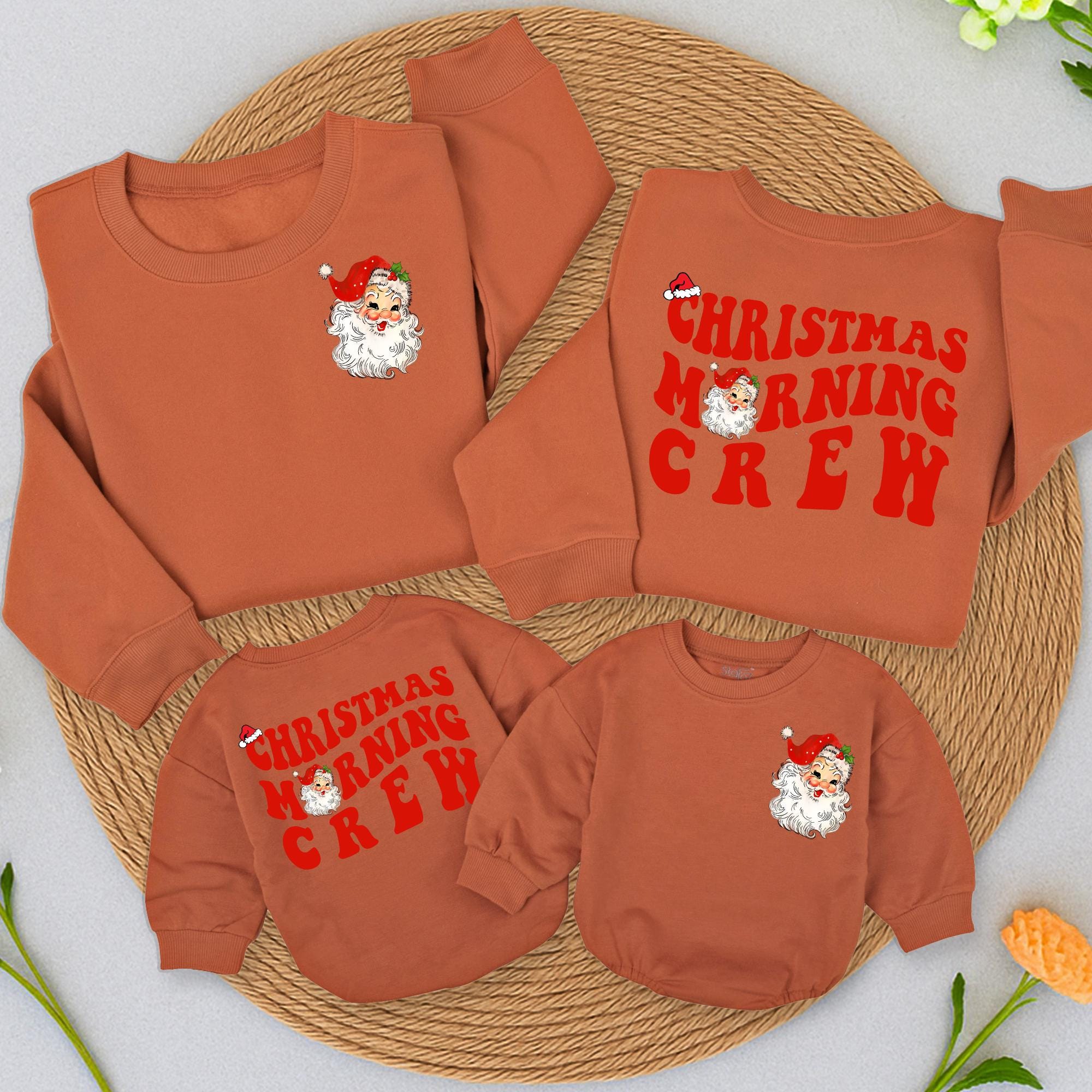 Vintage Santa Toddler Sweatshirt Christmas Morning Crew Romper Festive Red Holiday Outfit Soft Cotton Graphic Baby Girl Clothes