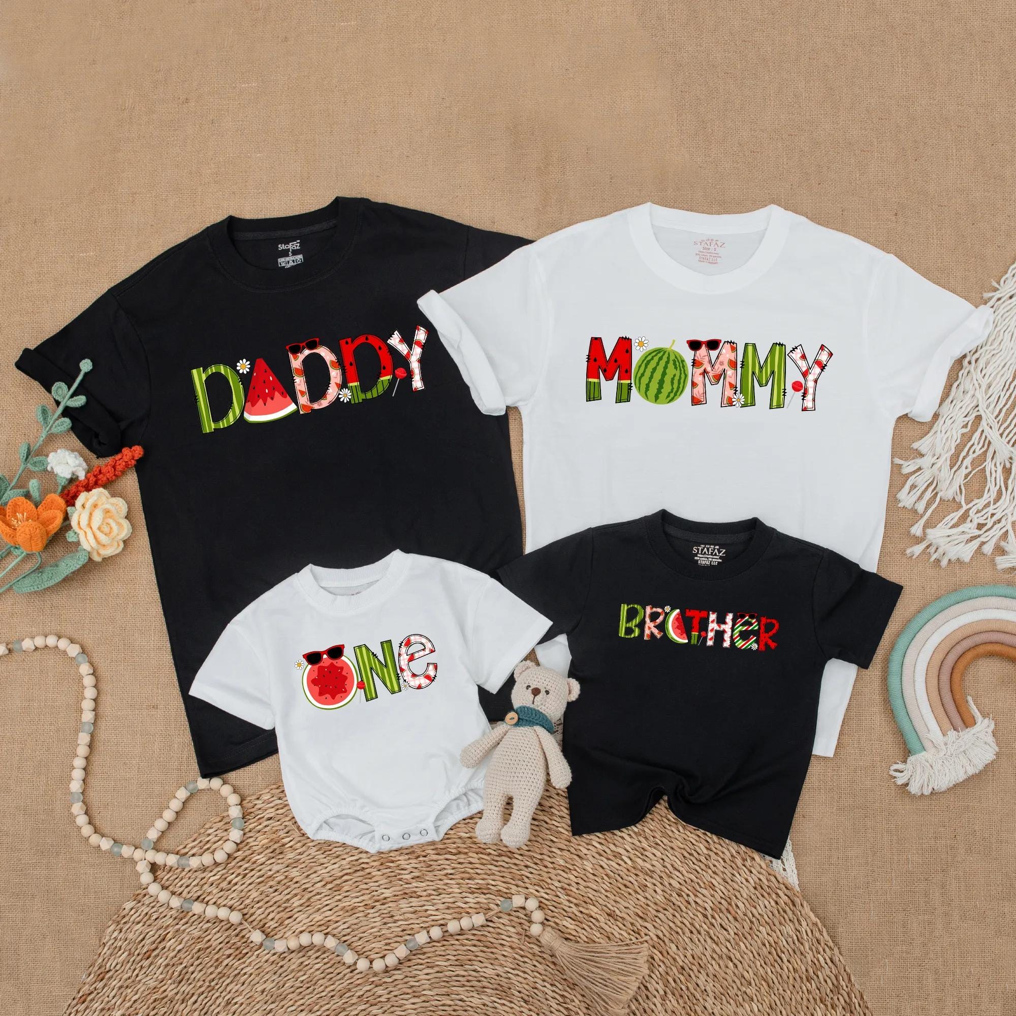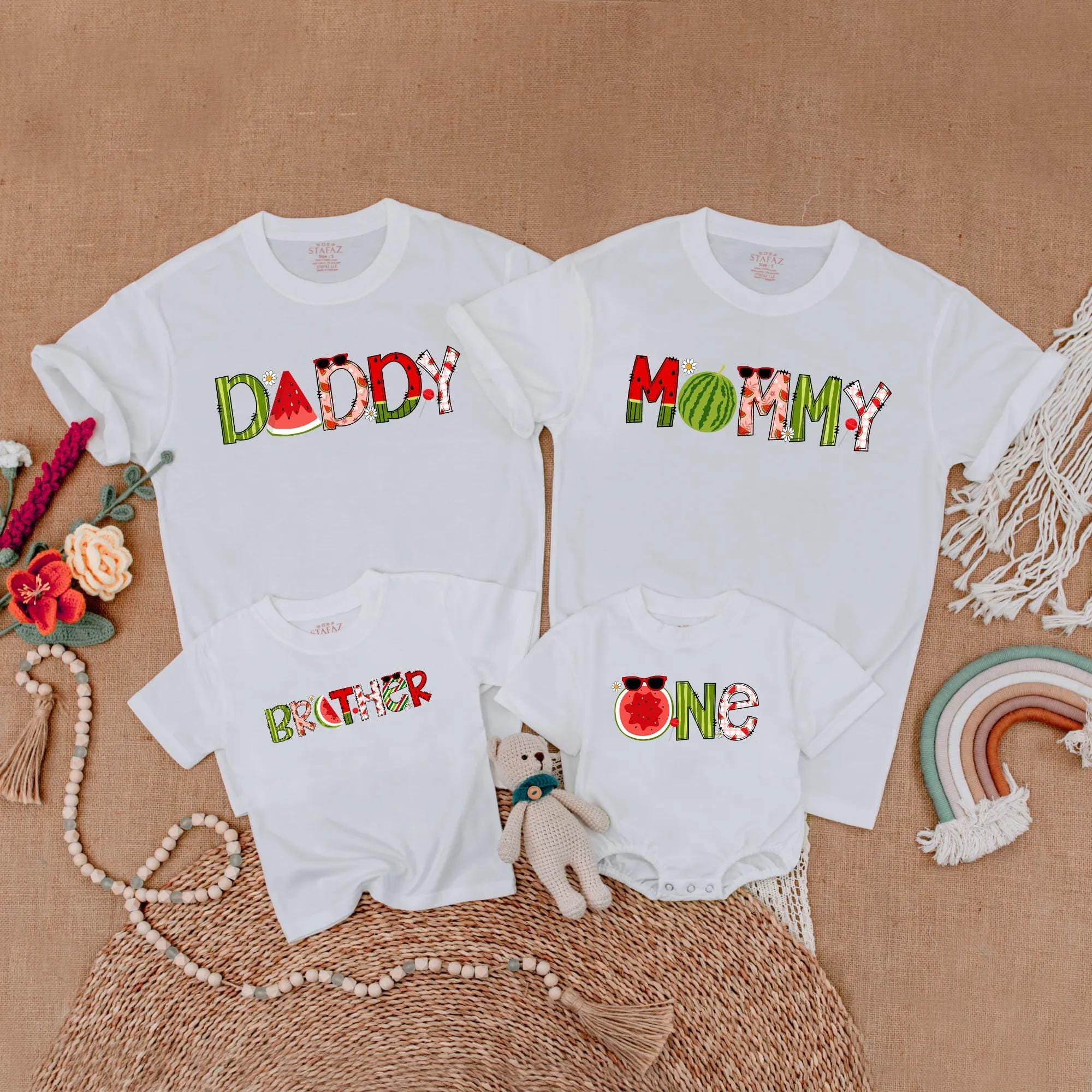 Watermelon Birthday Family Shirts Matching Summer Outfits for Toddler First Birthday Celebration Vibrant Fun Custom Names Cotton